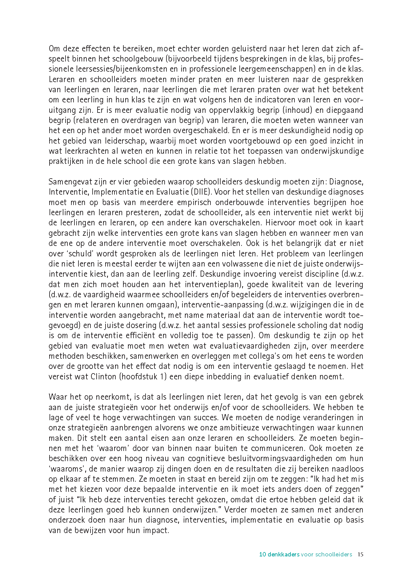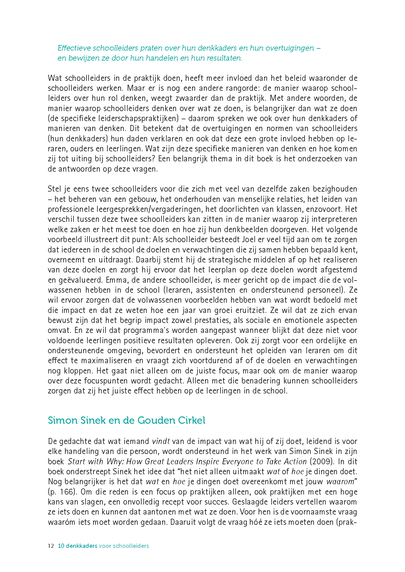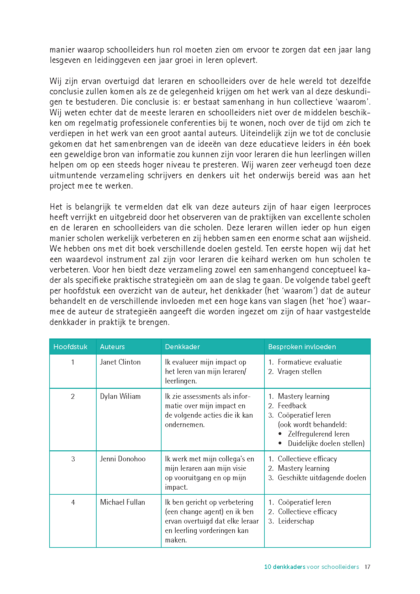 In dit boek komen tien bekende onderwijsexperts aan het woord die ieder een denkkader voor succesvol leiderschap voor hun rekening nemen. Elk hoofdstuk behandelt een denkkader dat is gericht op leren zichtbaar maken, met als doel de leerprestaties naar een hoger niveau te tillen. Dit boek biedt: