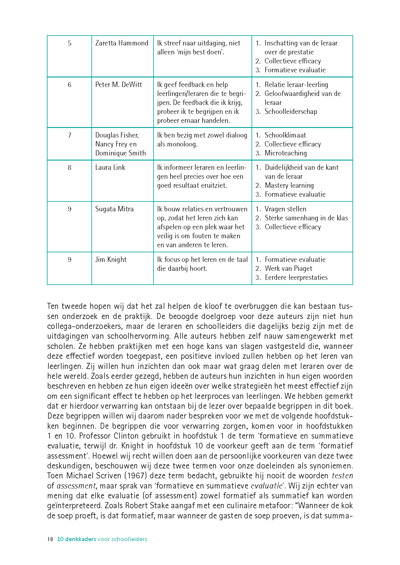 - praktijkvoorbeelden, checklists en oefeningen om leraren te helpen hun eigen denkkaders te verduidelijken en te verfijnen.