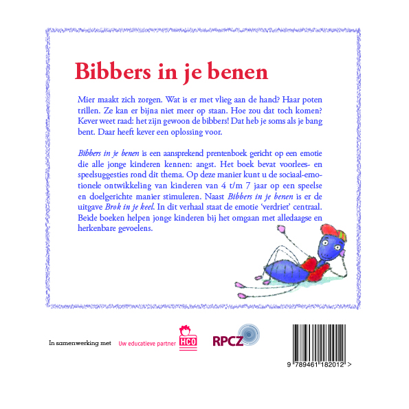 Bibbers in je benen is een aansprekend prentenboek gericht op een emotie die alle jonge kinderen kennen: angst. Het boek bevat voorlees- en speelsuggesties rond dit thema. Op deze manier kunt u de sociaal-emotionele ontwikkeling van kinderen van 4 t/m 7 jaar op een speelse en doelgerichte manier stimuleren.