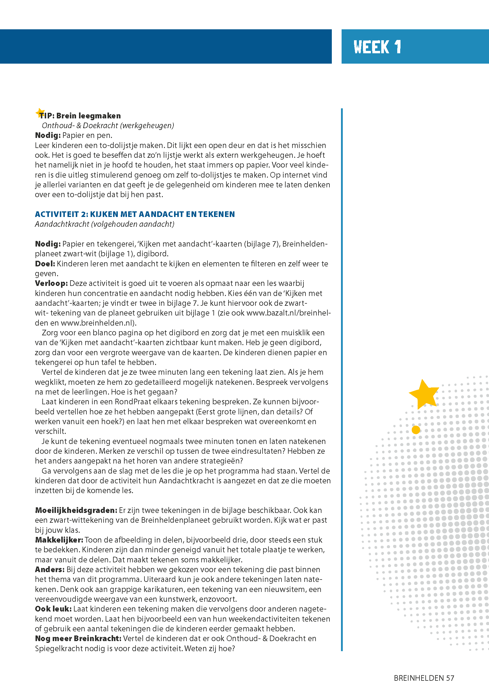 “Door de kindvriendelijke vertaling van executieve functies naar Breinkrachten, krijg je handvatten om deze functies bespreekbaar te maken met kinderen. Mijn leerlingen waren erg betrokken doordat het programma aansluit op hun bele-vingswereld en ze kregen steeds meer inzicht in hun eigen ontwikkeling. De bewustwording van de executieve functies en het (verder) ontwikkelen van executieve vaardigheden zijn ook een goede voorbereiding op het voortgezet onderwijs.”