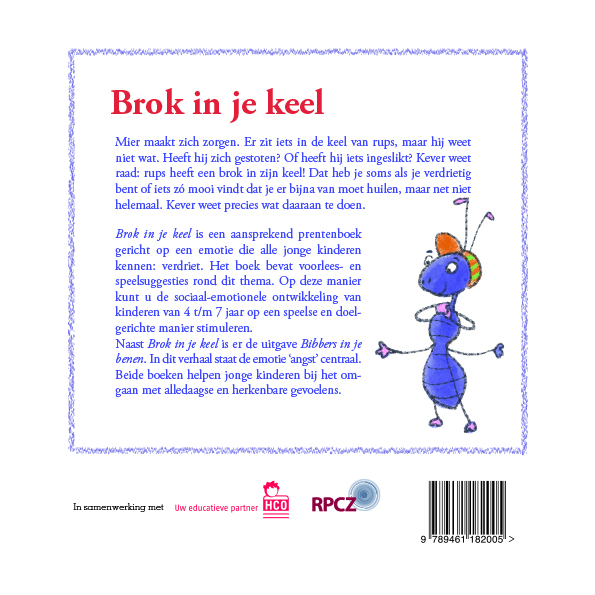 Brok in je keel is een aansprekend prentenboek gericht op een emotie die alle jonge kinderen kennen: verdriet. Het boek bevat voorlees- en speelsuggesties rond dit thema. Op deze manier kunt u de sociaal-emotionele ontwikkeling van kinderen van 4 t/m 7 jaar op een speelse en doelgerichte manier stimuleren.