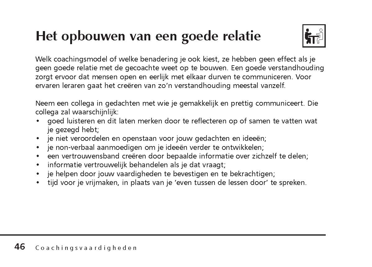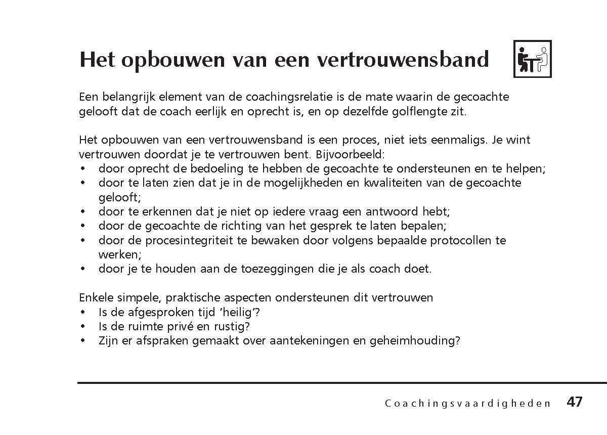 De auteur benadrukt hierbij het leerproces. Het gaat erom mensen te helpen hun eigen oplossingen te vinden in plaats van ze advies te geven, hen te vertellen wat ze moeten doen of problemen voor hen op te lossen. Of je nu coacht of gecoacht wordt, dit pocketboek kan je helpen om 'nog beter' te worden in je rol.