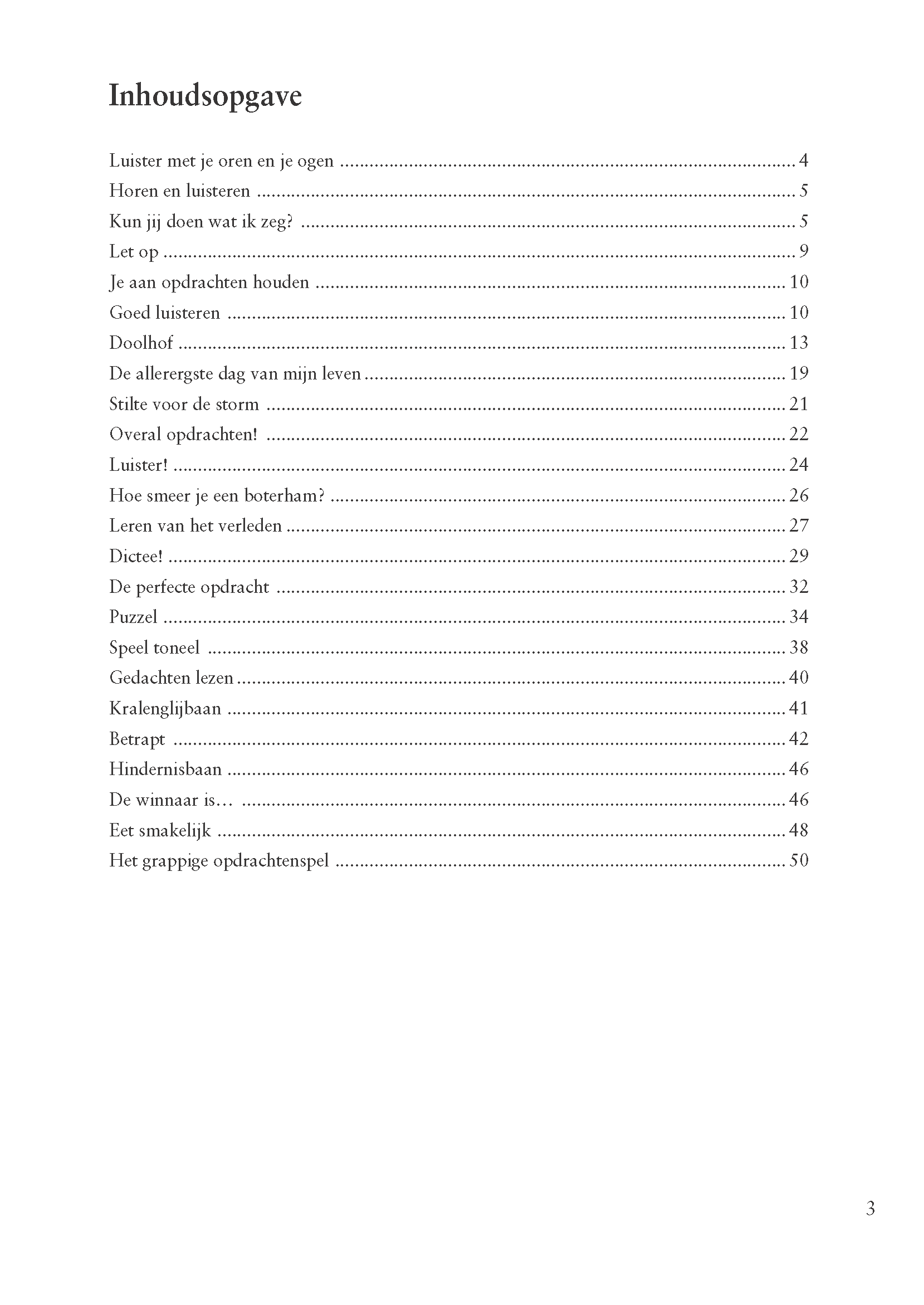 In de activiteitengids vindt u niet alleen oefeningen om beter te leren luisteren en je aan opdrachten te houden, maar ook oefeningen waarbij de kinderen moeten observeren, nadenken, evalueren, schrijven en samenwerken om de uitdagende activiteiten uit te voeren. Deze gids biedt een scala aan activiteiten, variërend van kleurplaten en doolhoven voor jongere kinderen tot spelletjes en werkbladen met complexere aanwijzingen voor oudere kinderen.