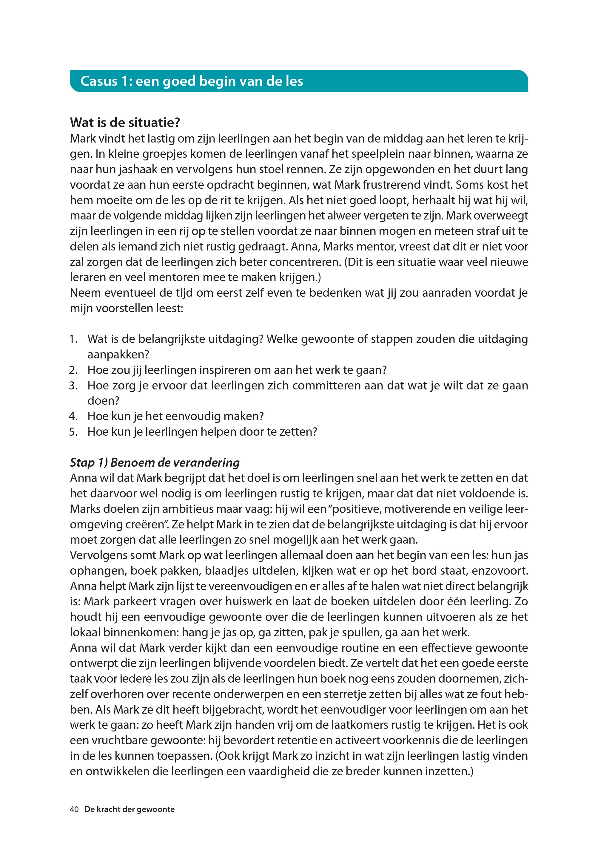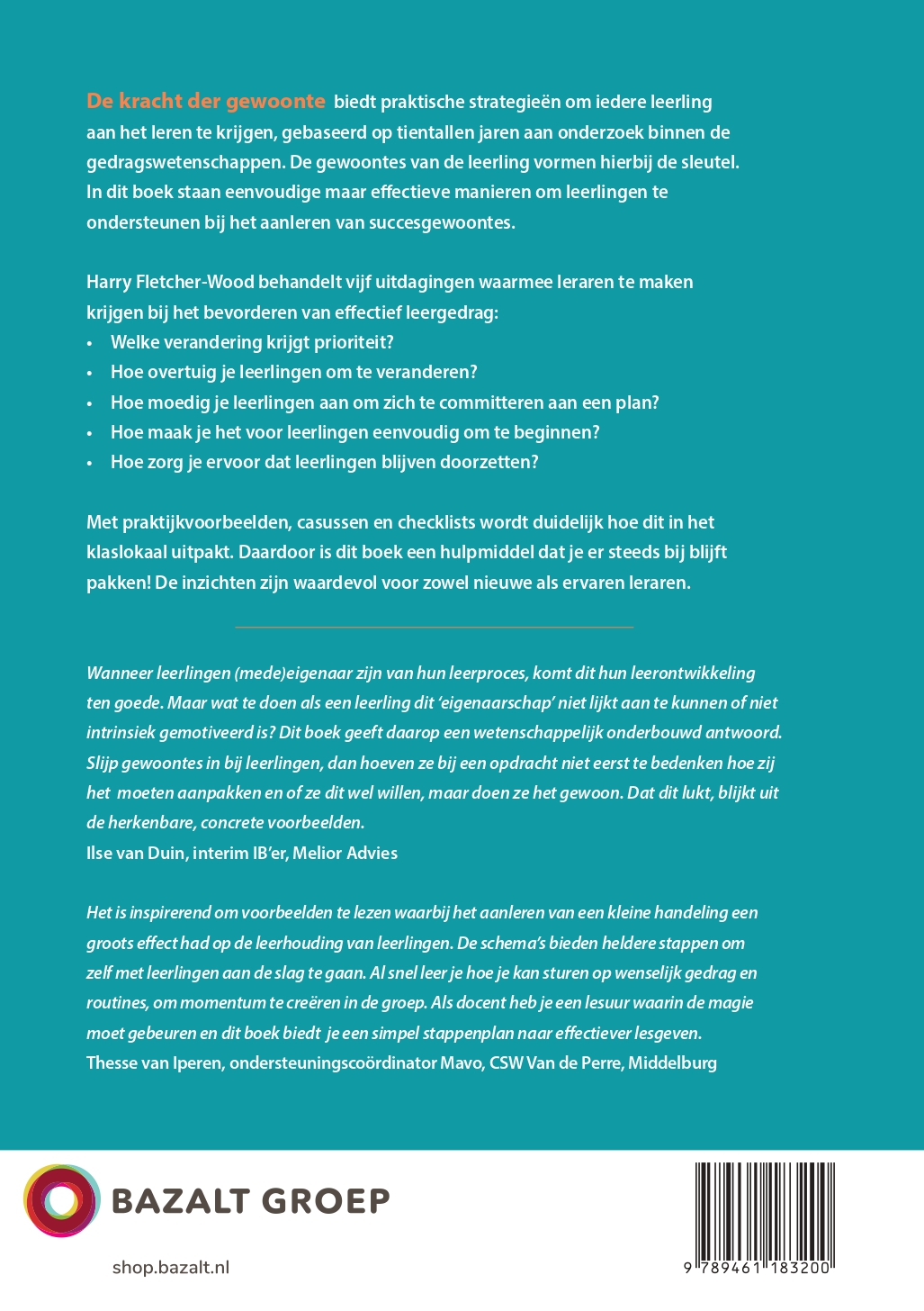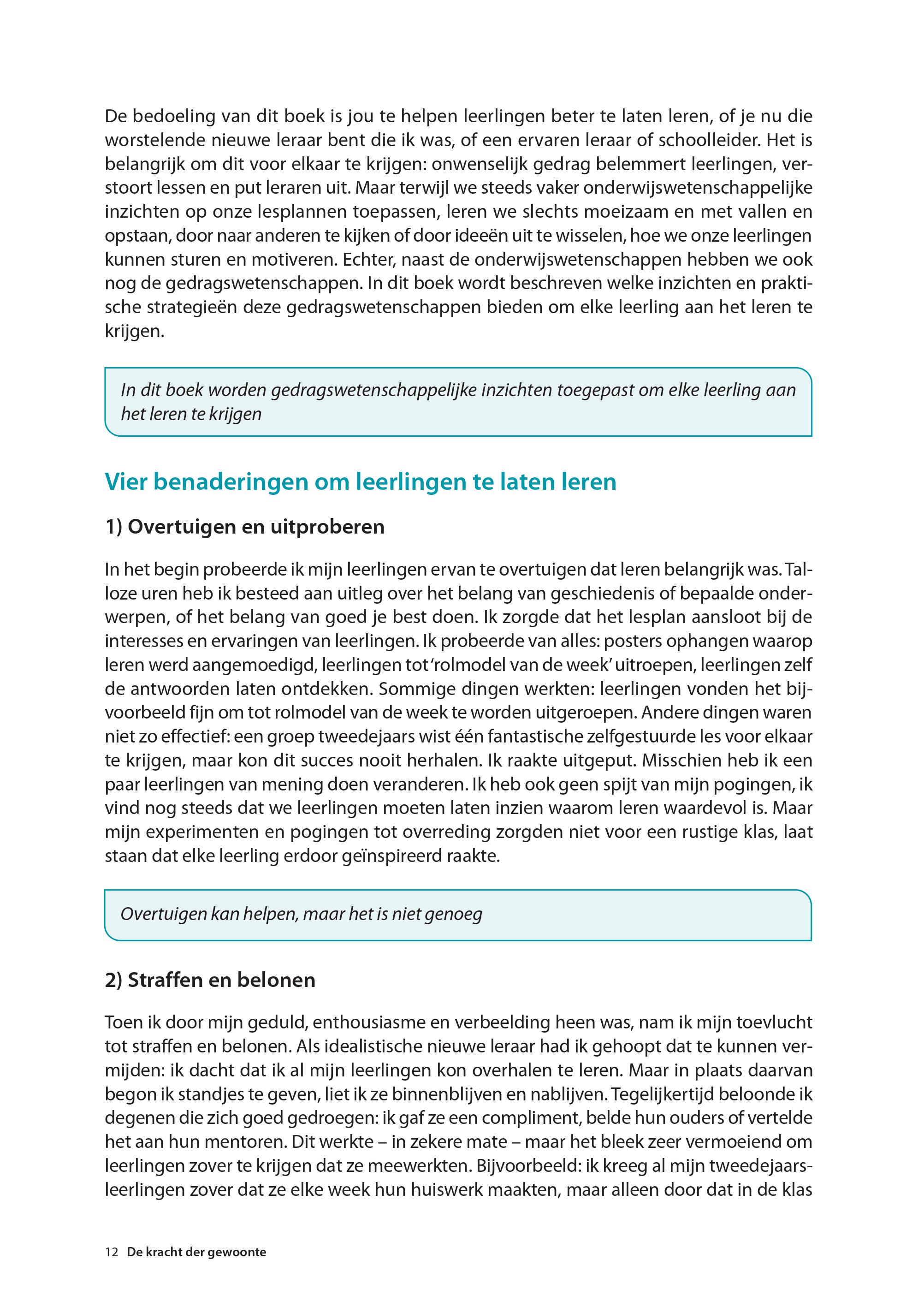 De kracht der gewoonte biedt praktische strategieën om iedere leerling aan het leren te krijgen, gebaseerd op tientallen jaren aan onderzoek binnen de gedragswetenschappen. In dit boek staan eenvoudige maar effectieve manieren om leerlingen te ondersteunen bij het aanleren van succesgewoontes.