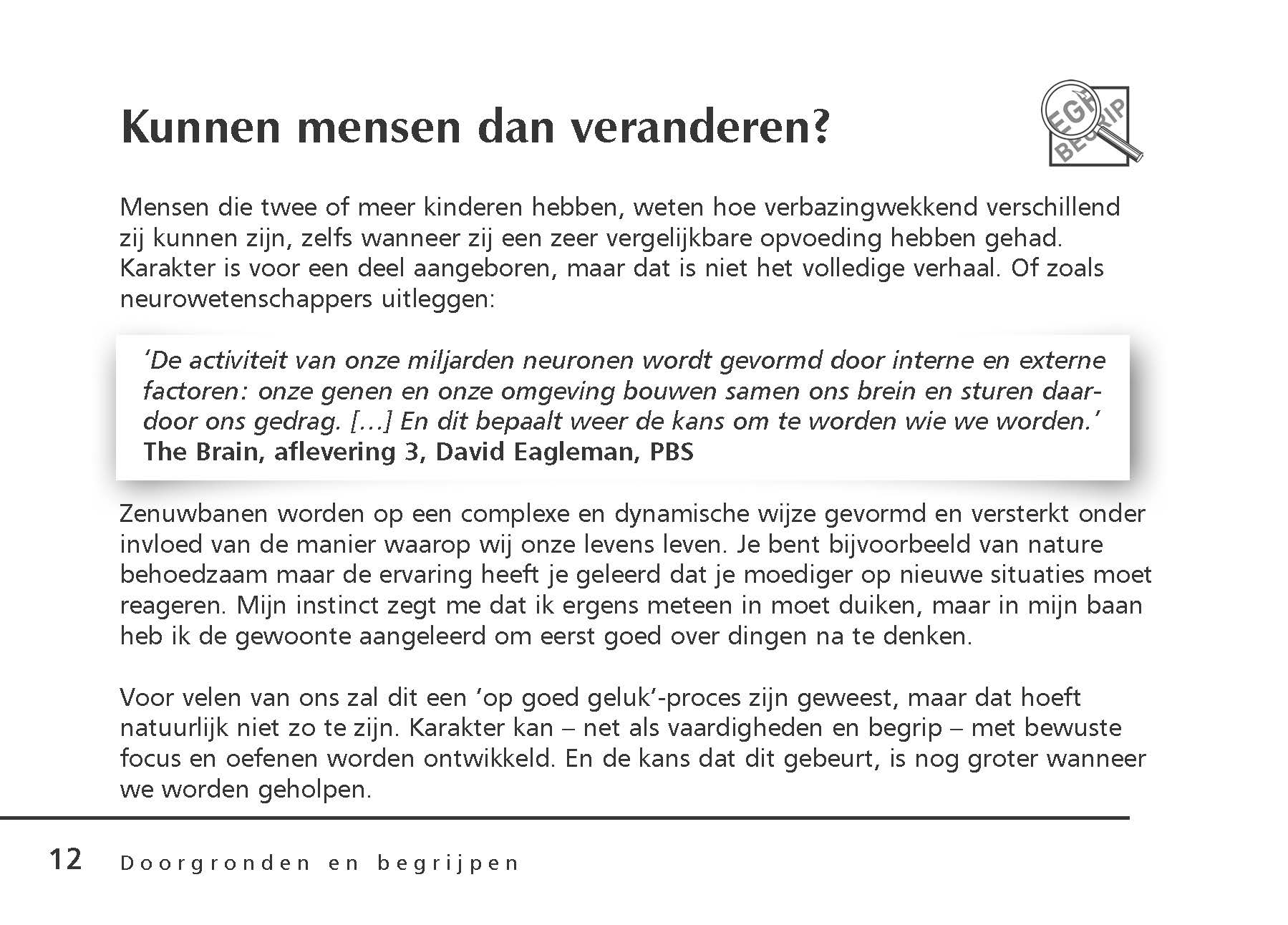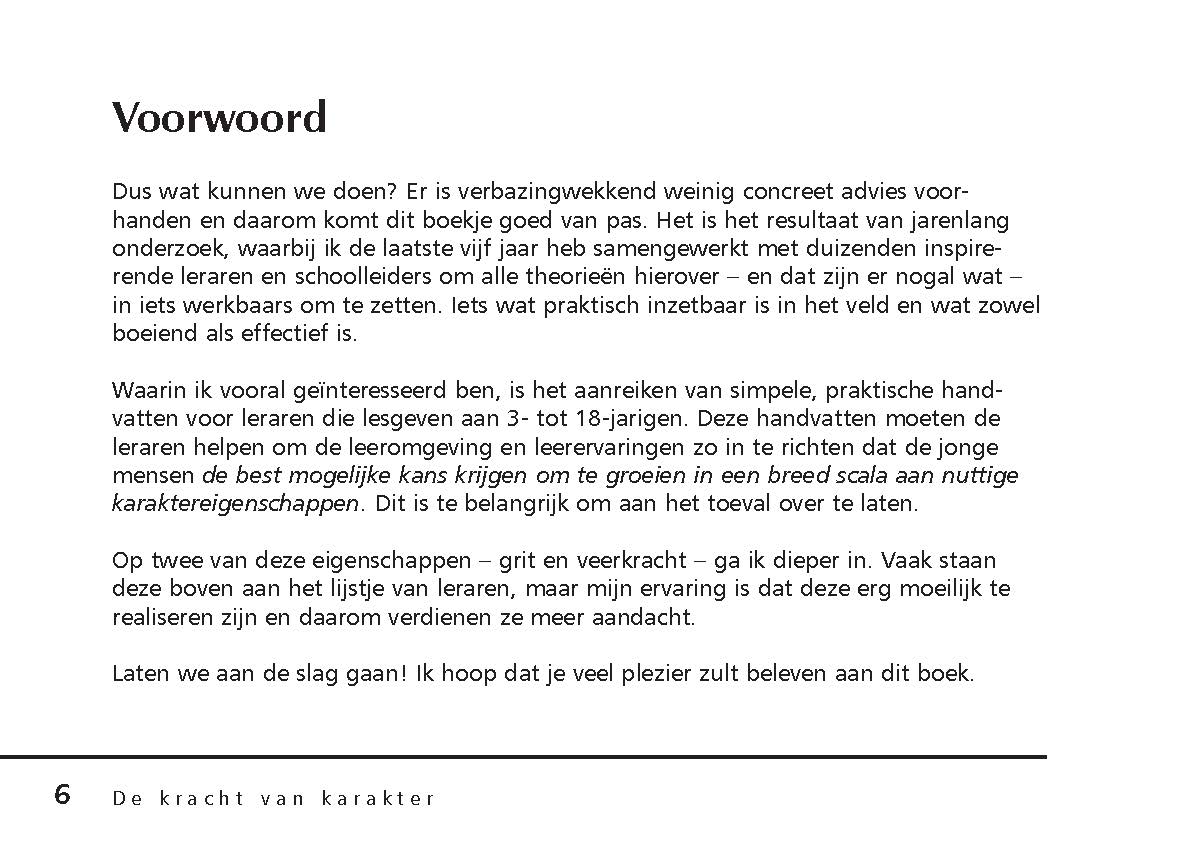 Meten en weten hoe intelligent je bent, voorspelt niet hoe ver je het later zult schoppen in je leven. Blijkbaar is er een factor die belangrijker is om te bereiken wat je wilt bereiken: karakter. Nu zijn karaktereigenschappen deels aangeboren, maar ook deels ontwikkelbaar. En bij dat ontwikkelen van waardevolle karaktereigenschappen, kun je als leraar een belangrijke rol spelen. Wat zijn waardevolle karaktereigenschappen in het leven? Leergierigheid, initiatief tonen, zelfdiscipline, doorzettingsvermogen? En hoe kun je die versterken? Dit boekje biedt daarvoor tips en strategieën. Het gaat in op belangrijke vaardigheden als veerkracht en ‘grit’ (doelgericht doorzetten). Met de juiste eigenschappen zijn leerlingen goed toegerust op een leven lang leren!