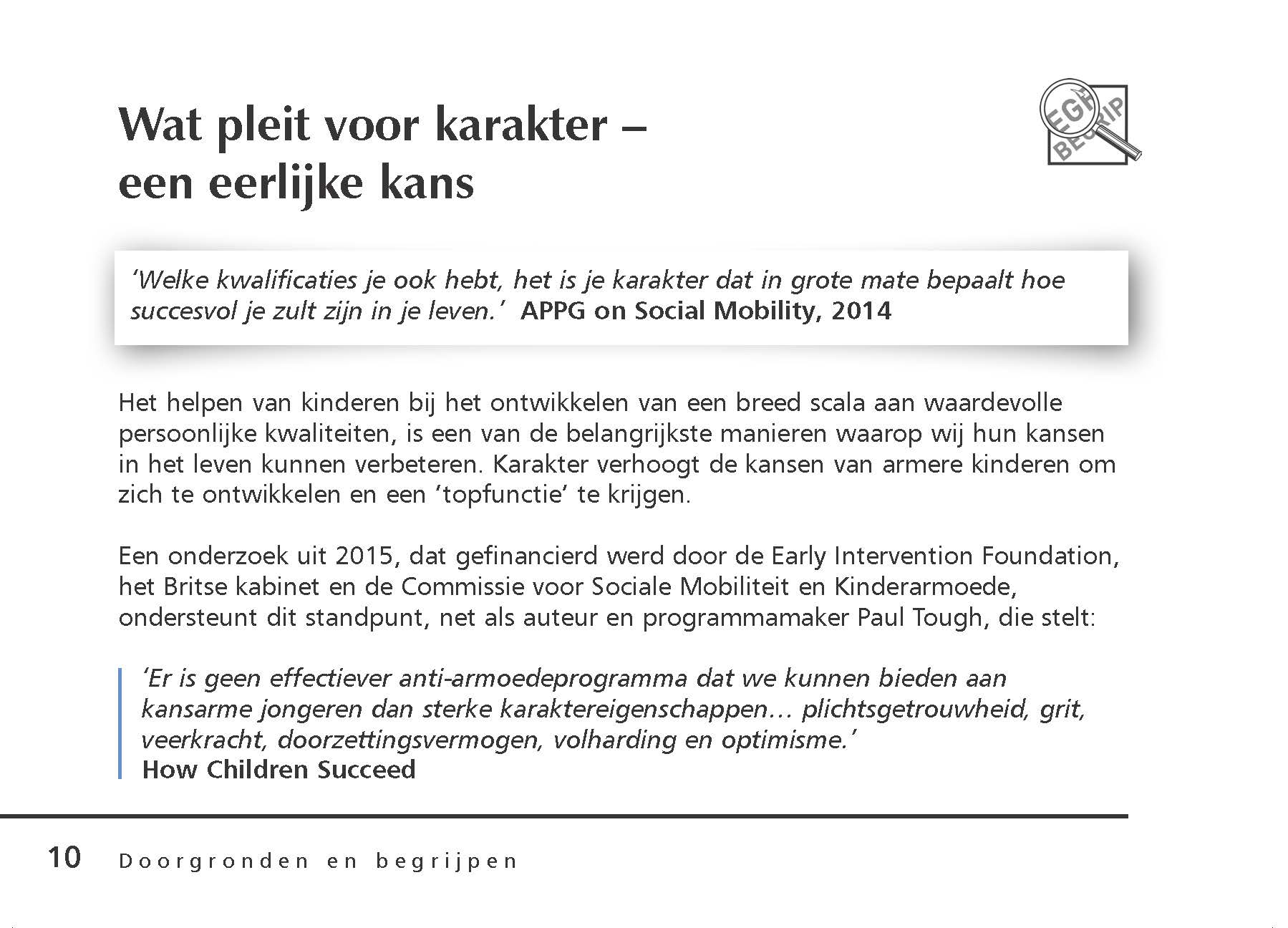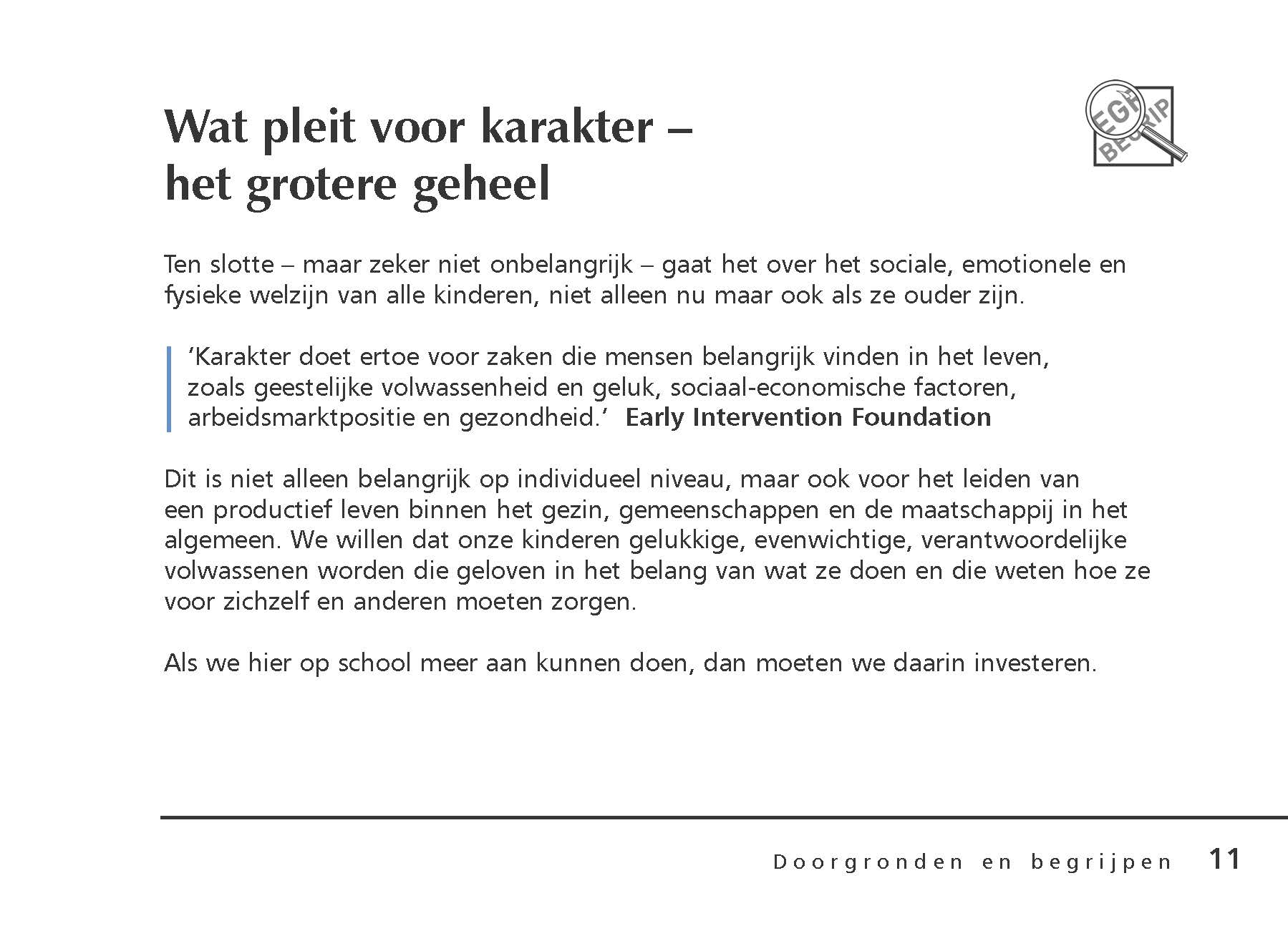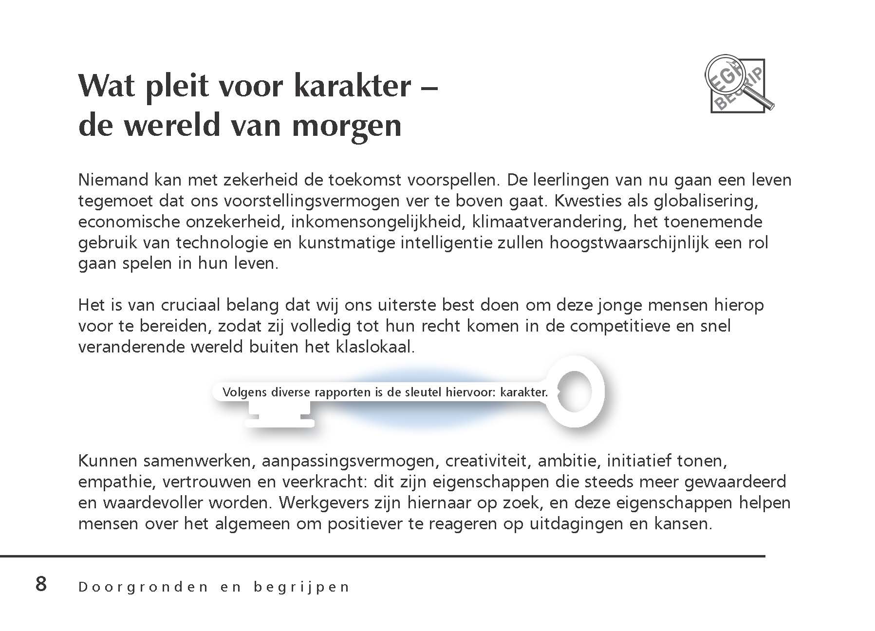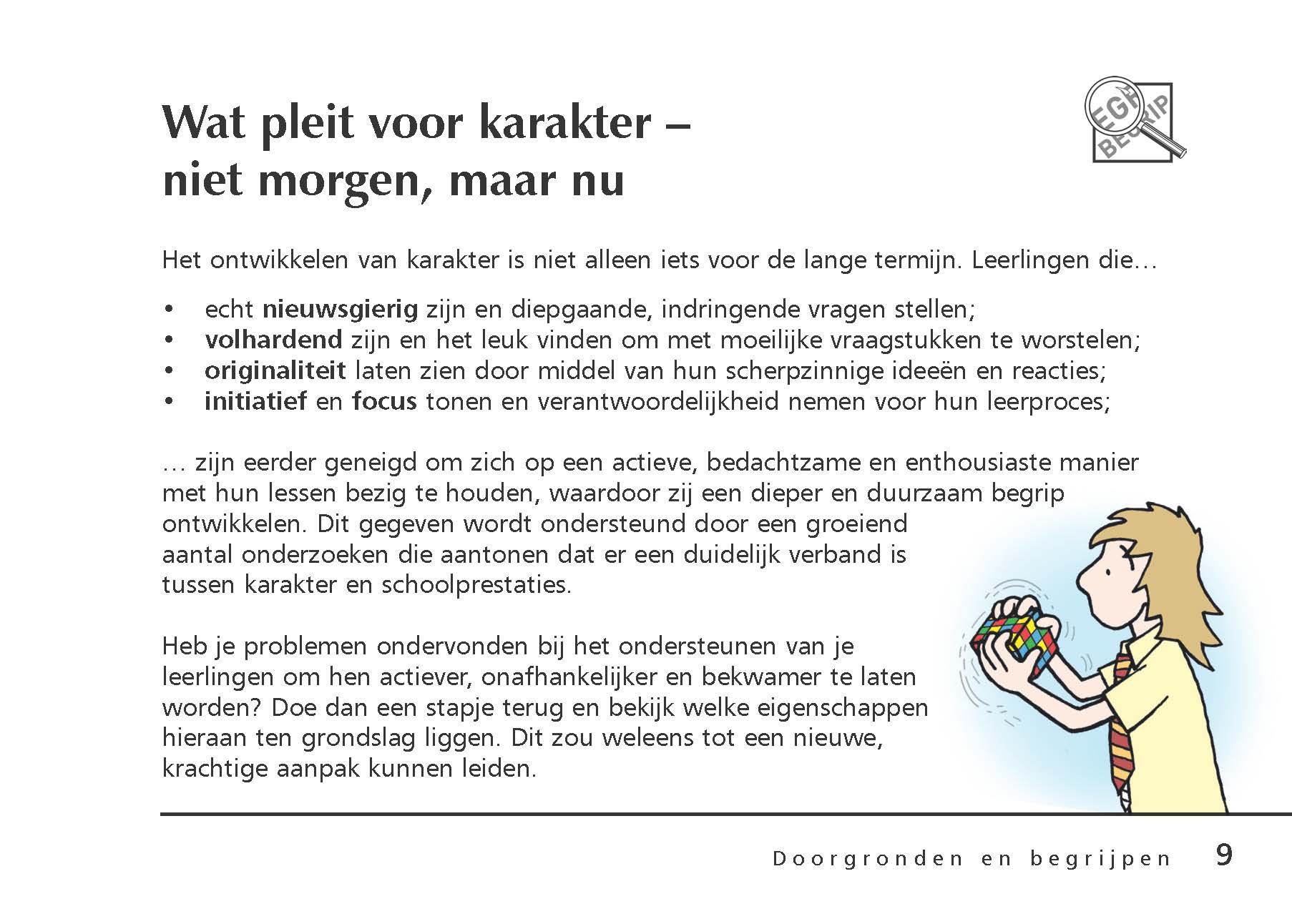 Werken aan je karakter. Het kan! Karakter verhoogt de kansen van kinderen om zich optimaal te ontwikkelen. Dit boekje geeft leraren handvatten om de leerervaringen zo in te richten dat zij leerlingen kunnen helpen bij het ontwikkelen van belangrijke karaktereigenschappen.