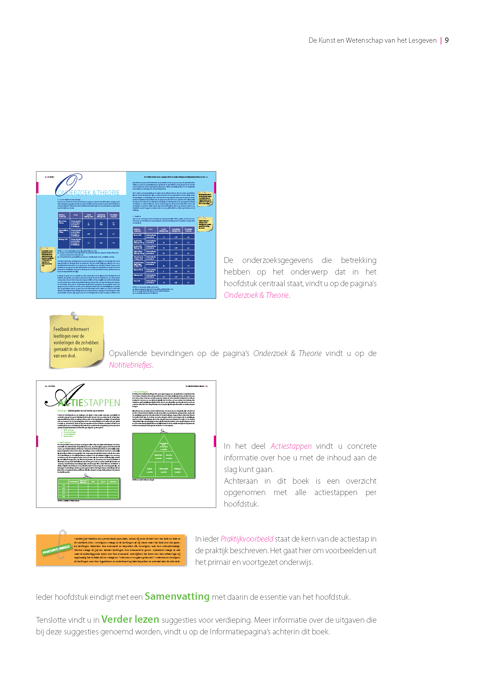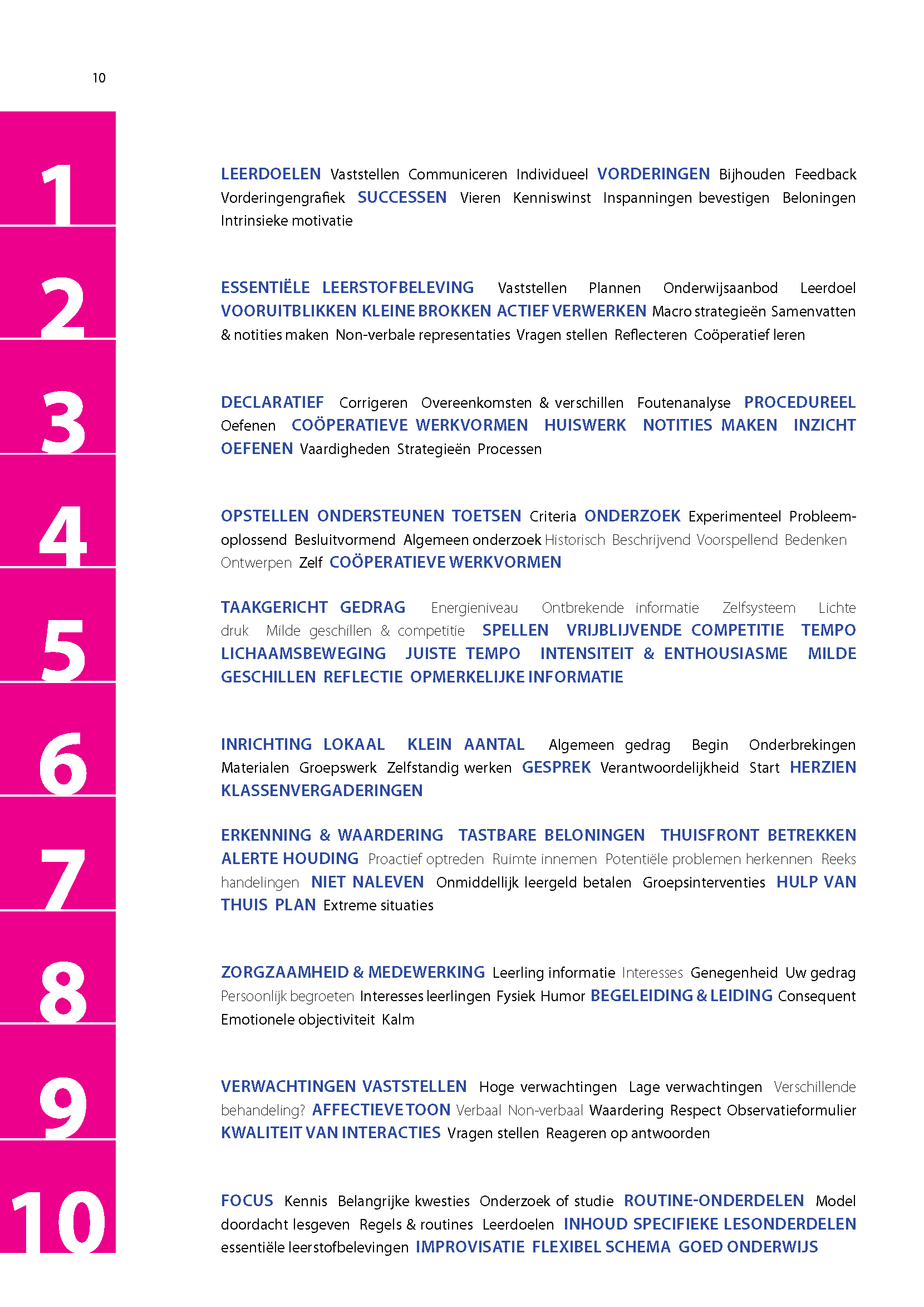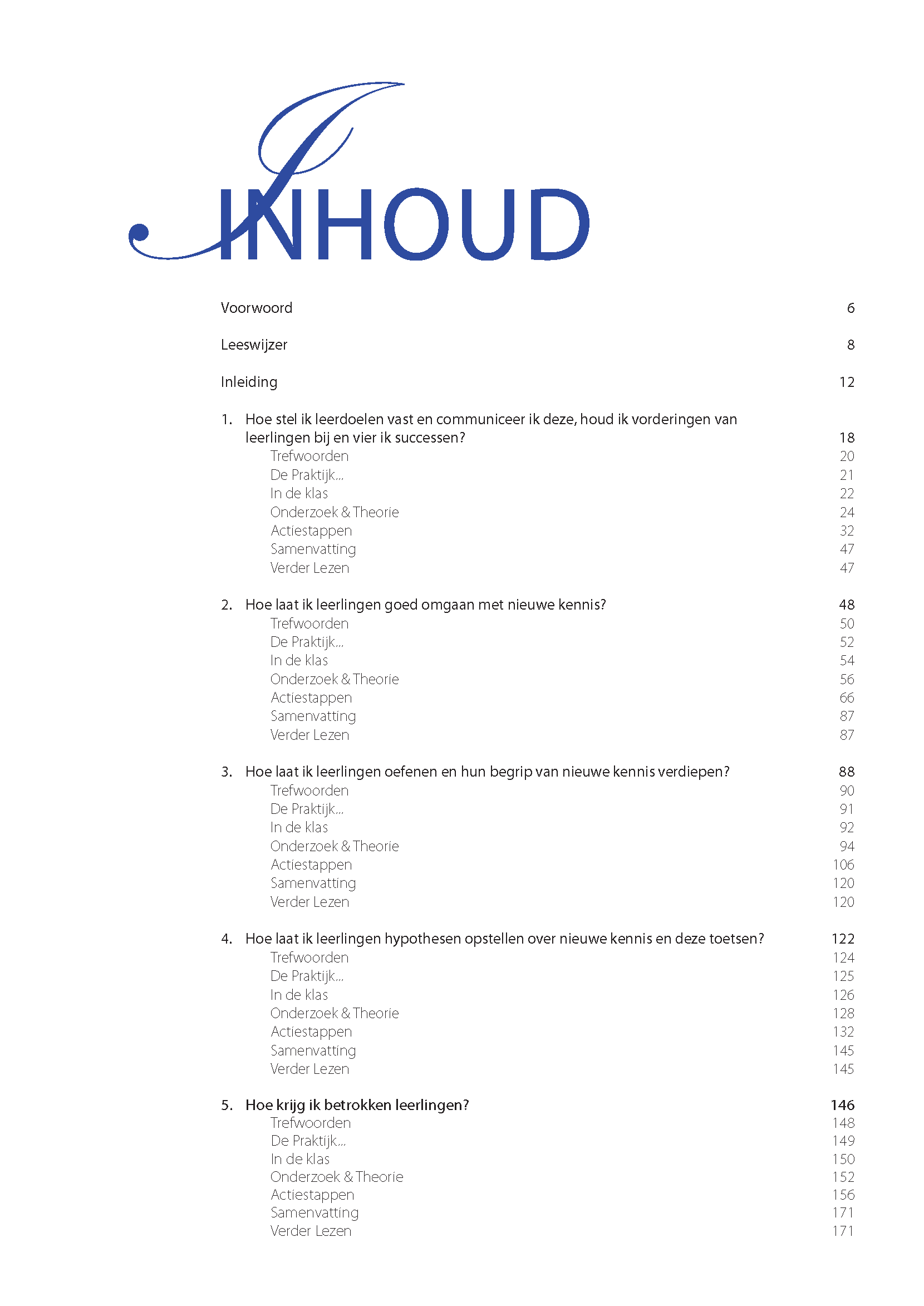 De laatste jaren is aan de hand van onderzoek veel bekend geworden over goed onderwijs. Het lesgeven zelf is weliswaar geen wetenschap, maar onderzoek vertelt ons wel welke aanpakken de leerlingen het beste kunnen helpen. Je bepaalt vervolgens zelf welke aanpakken je met welke leerlingen wil toepassen en op welk moment. Goed onderwijs draait dus om de combinatie van de door de wetenschap vastgestelde beste methoden en je vakmanschap. Het vakmanschap van de leraar. In deze uitgave benadrukken we zowel de kunst als de wetenschap van het lesgeven. Alles wat nodig is voor een goede les, wordt behandeld door de volgende tien vragen te beantwoorden: