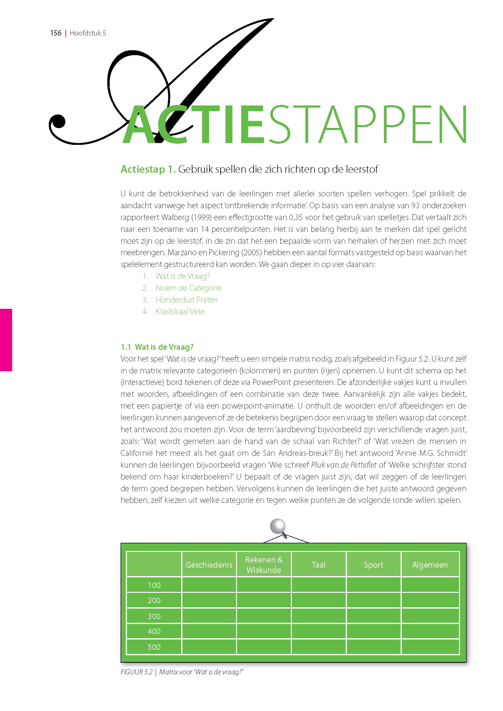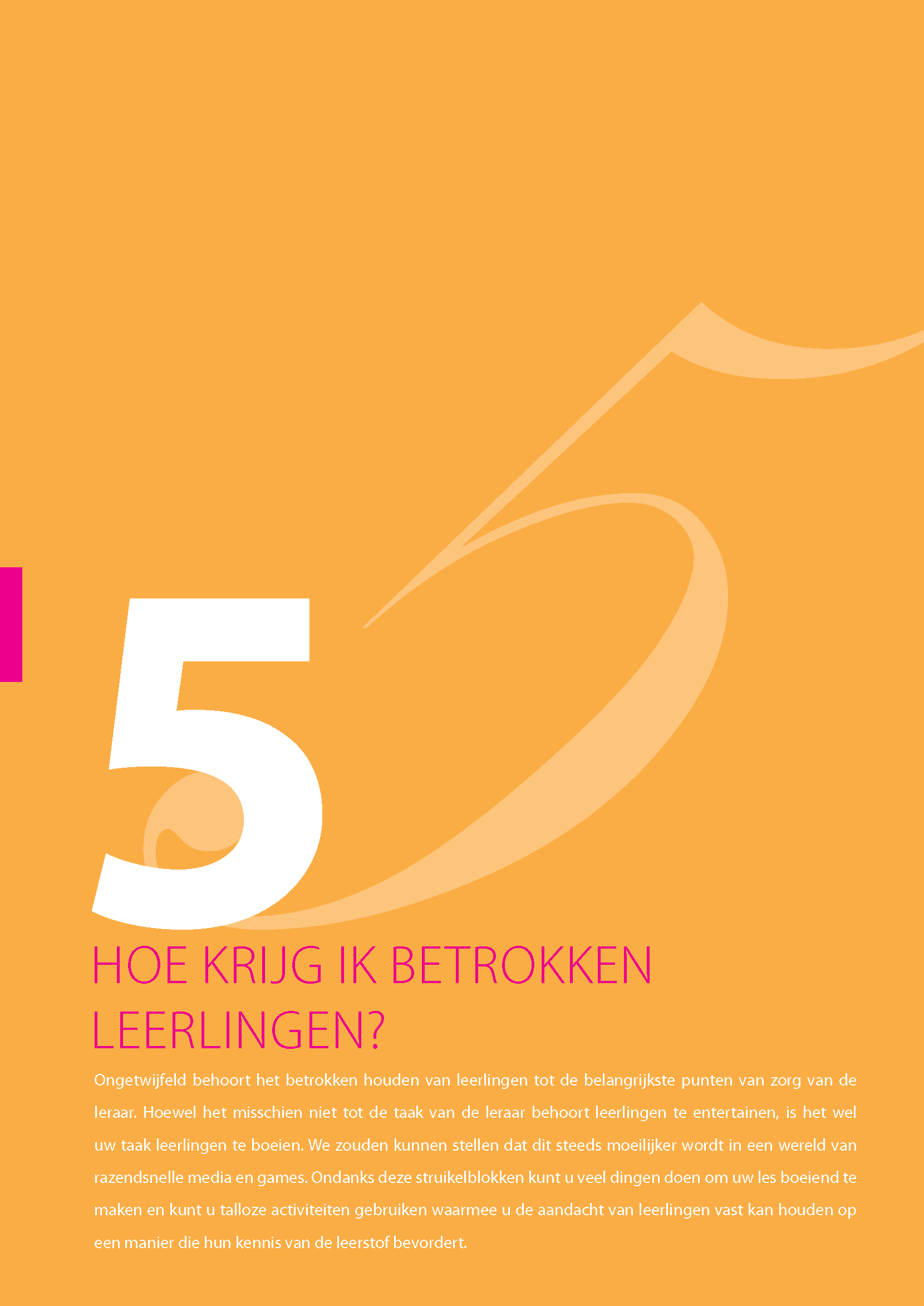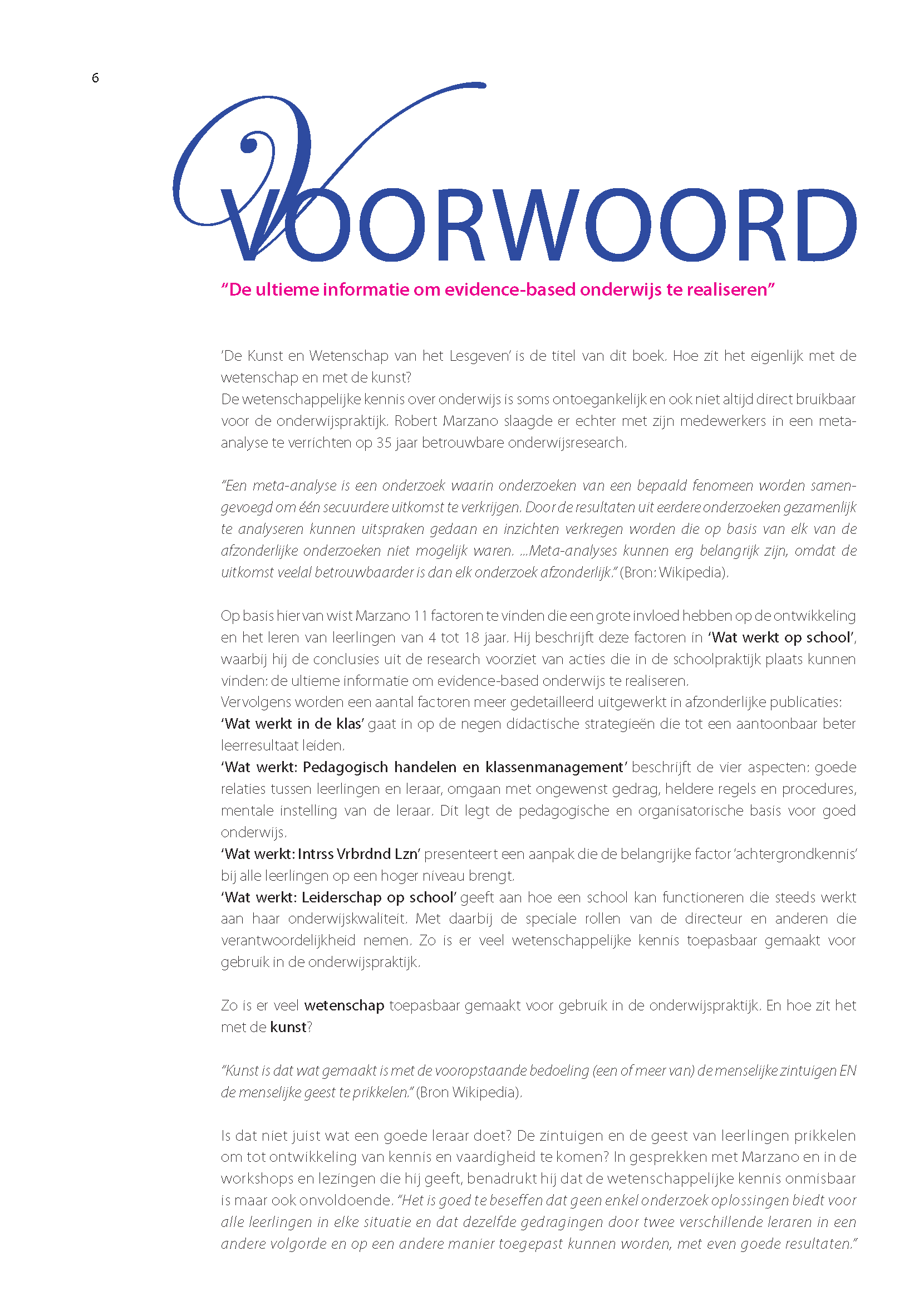 De laatste jaren is aan de hand van onderzoek veel bekend geworden over goed onderwijs. Het lesgeven zelf is weliswaar geen wetenschap, maar onderzoek vertelt ons wel welke aanpakken de leerlingen het beste kunnen helpen. Je bepaalt vervolgens zelf welke aanpakken je met welke leerlingen wil toepassen en op welk moment. Goed onderwijs draait dus om de combinatie van de door de wetenschap vastgestelde beste methoden en je vakmanschap. Het vakmanschap van de leraar. In deze uitgave benadrukken we zowel de kunst als de wetenschap van het lesgeven. Alles wat nodig is voor een goede les, wordt behandeld door de volgende tien vragen te beantwoorden: