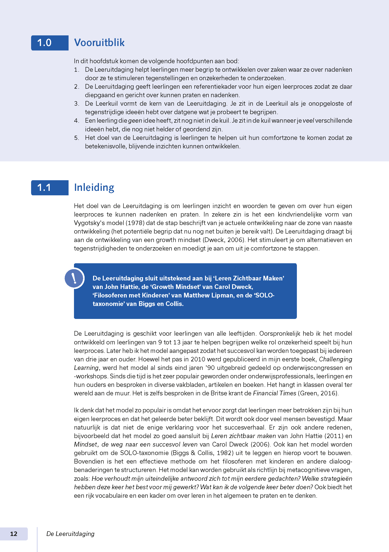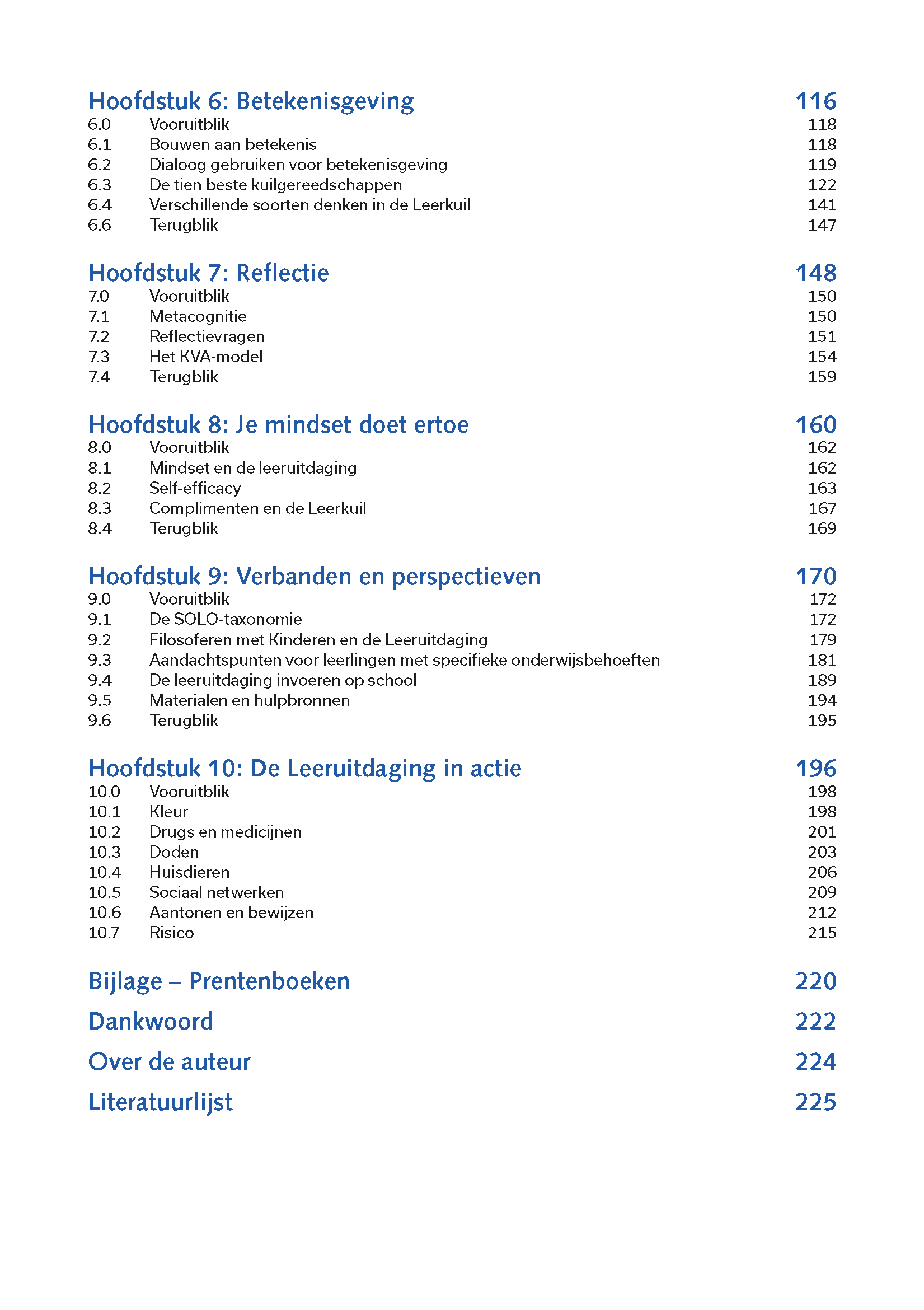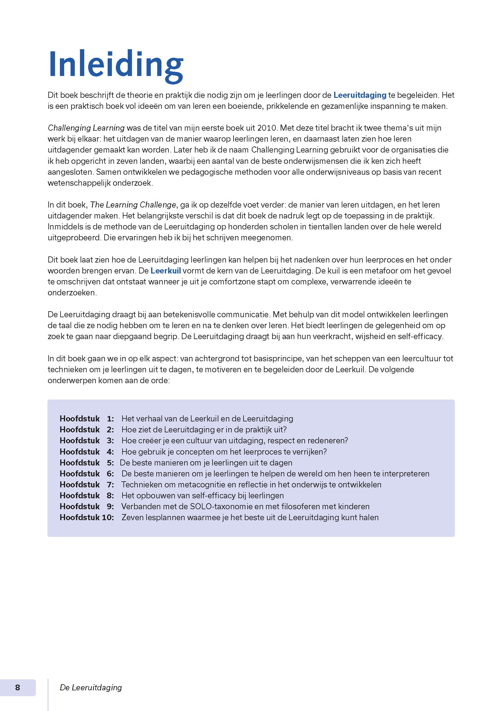 Hoe vaker een leerling de Leeruitdaging doormaakt, hoe groter de kans dat hij of zij een growth mindset ontwikkelt. De concrete lesplannen, technieken en denktools in dit boek helpen je om leerlingen in het primair en voortgezet onderwijs door de Leeruitdaging te begeleiden.