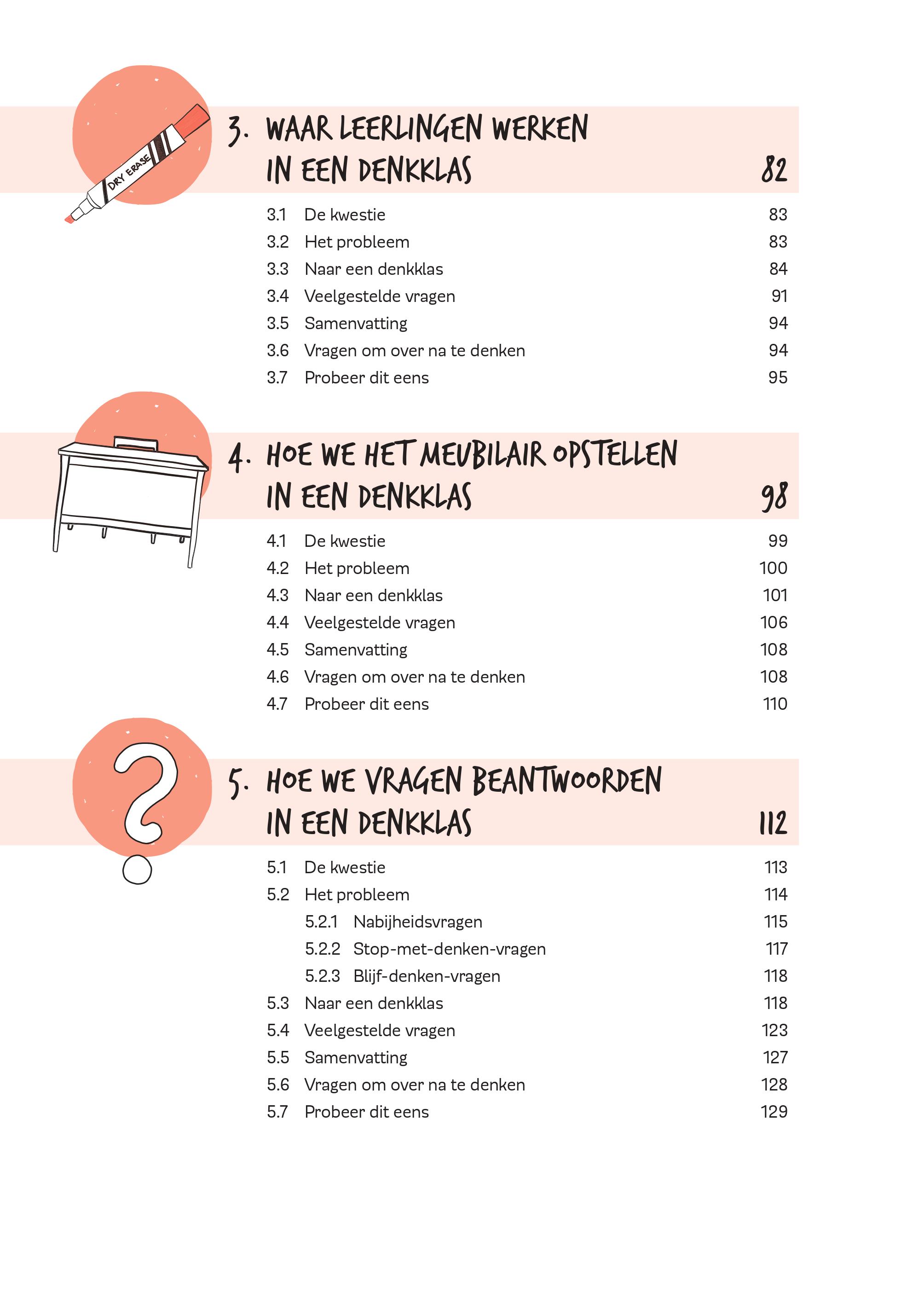 Deze denkstrategieën zijn ook uitstekend inzetbaar bij andere vakgebieden, want leerlingen die nadenken zijn betrokken leerlingen die tot leren komen.