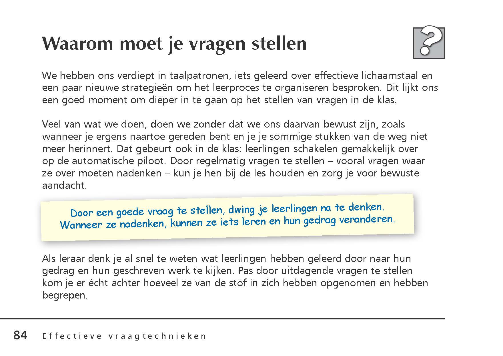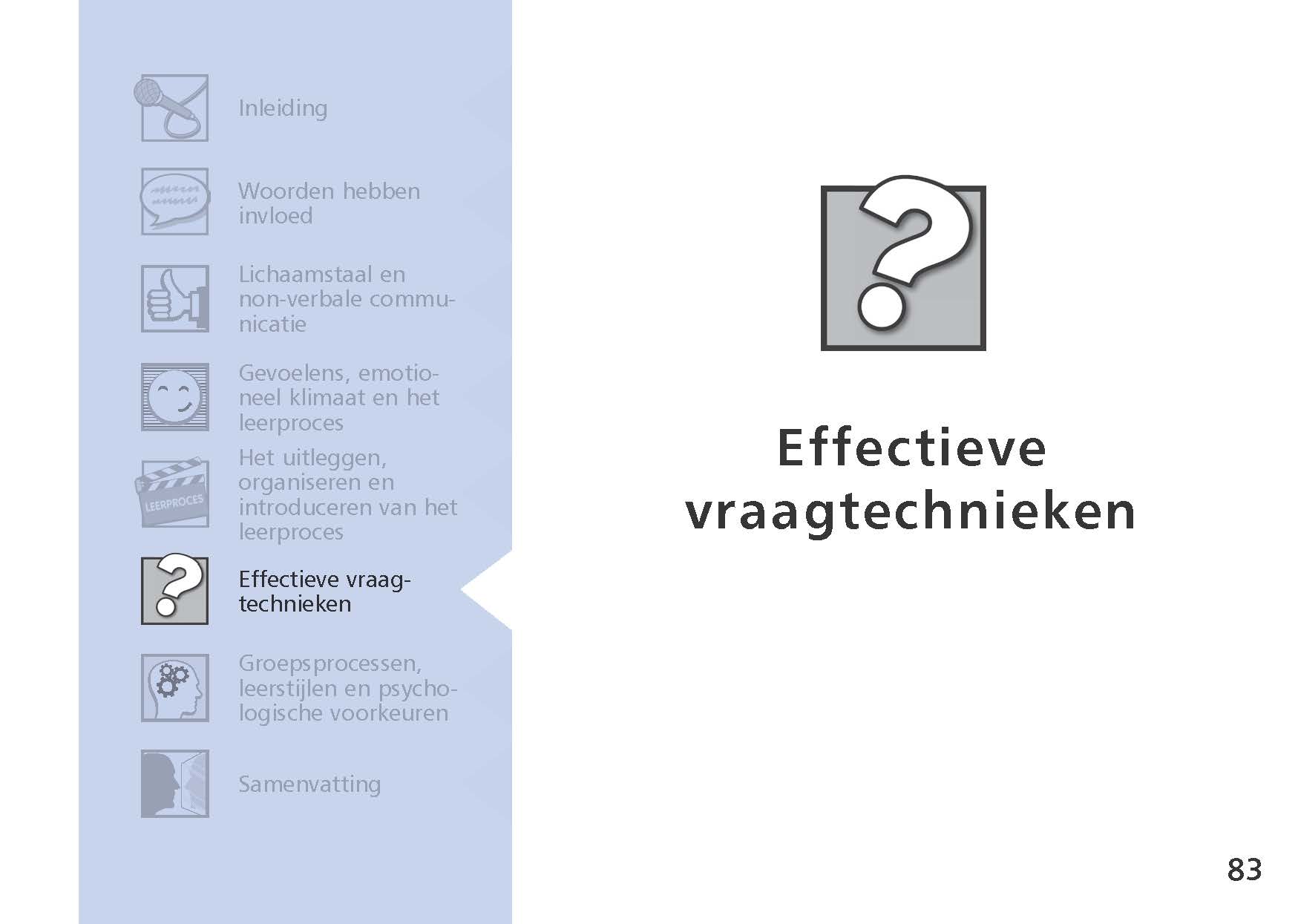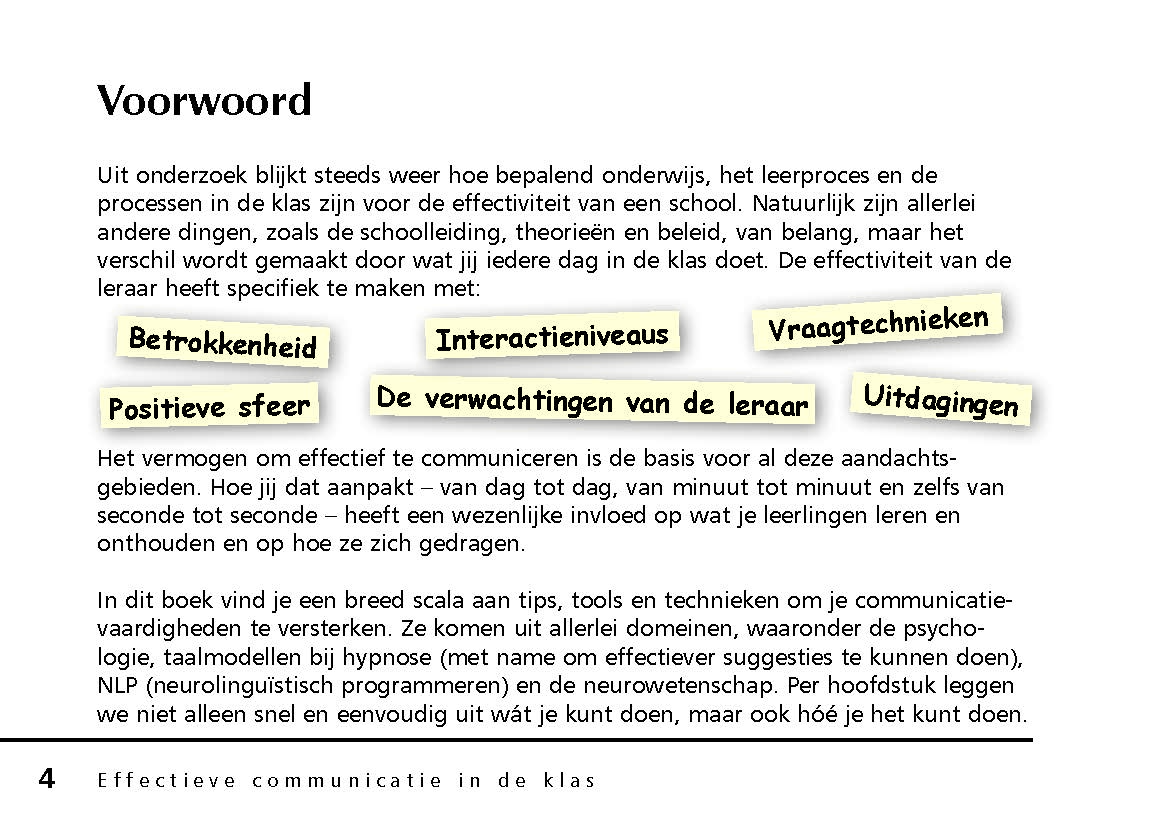 Hoe kun je met verbale en non-verbale communicatie het leerproces van leerlingen beïnvloeden en positief gedrag in de klas ondersteunen? Hoe communiceer je om het juiste emotionele klimaat te creëren? Wat zijn effectieve vraagtechnieken? Dit pocketboek geeft je antwoord op deze vragen en biedt tools, tips en technieken om je communicatievaardigheden te versterken.
