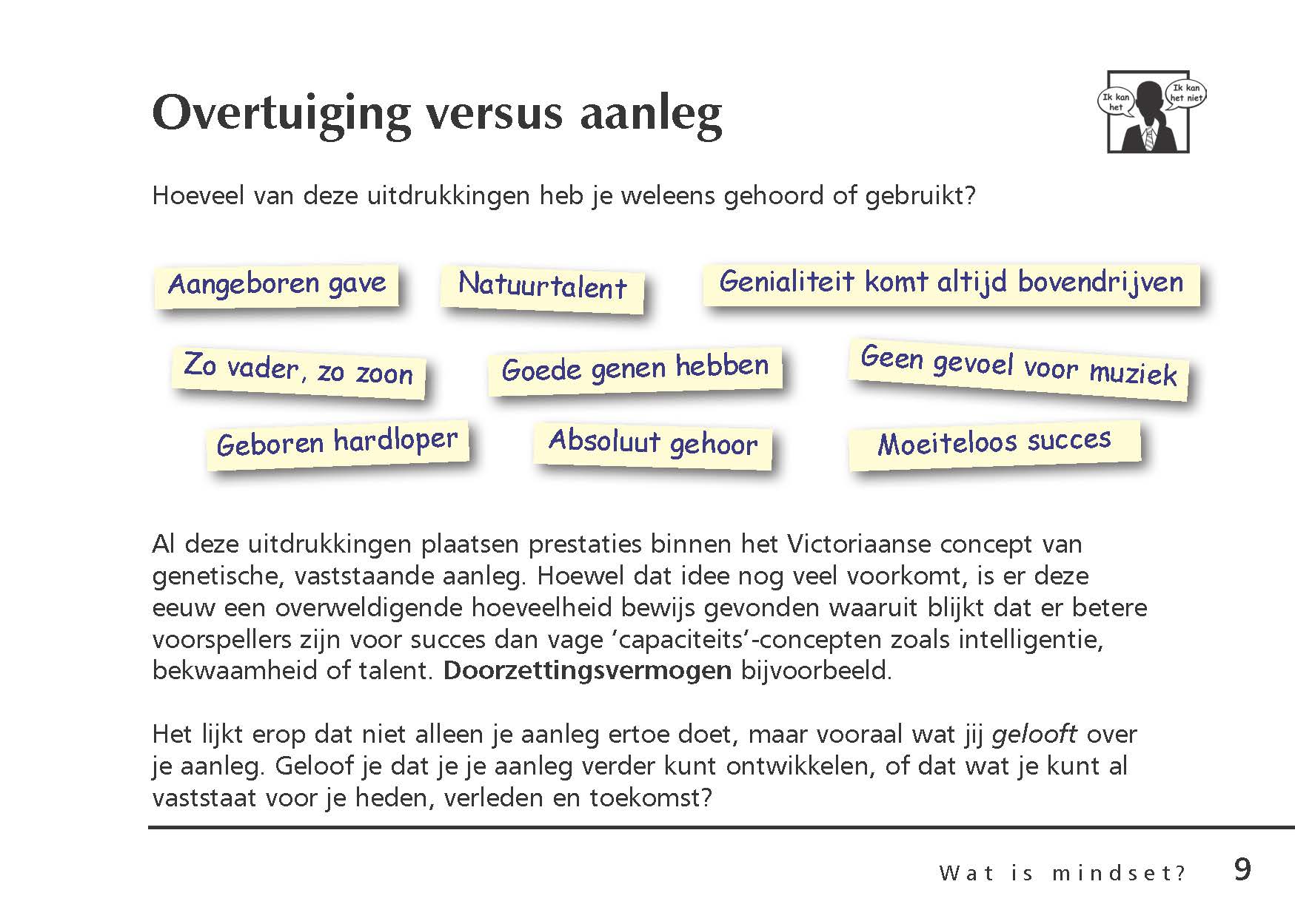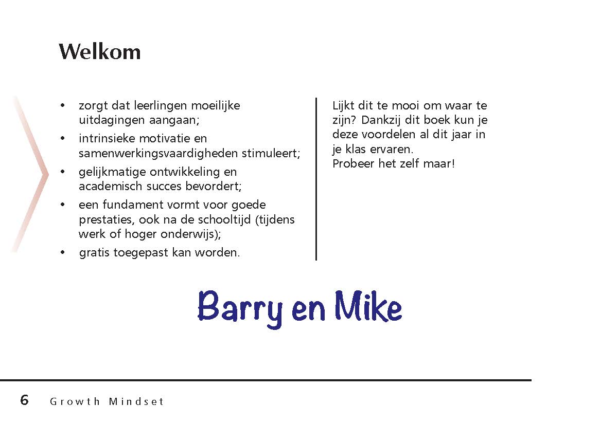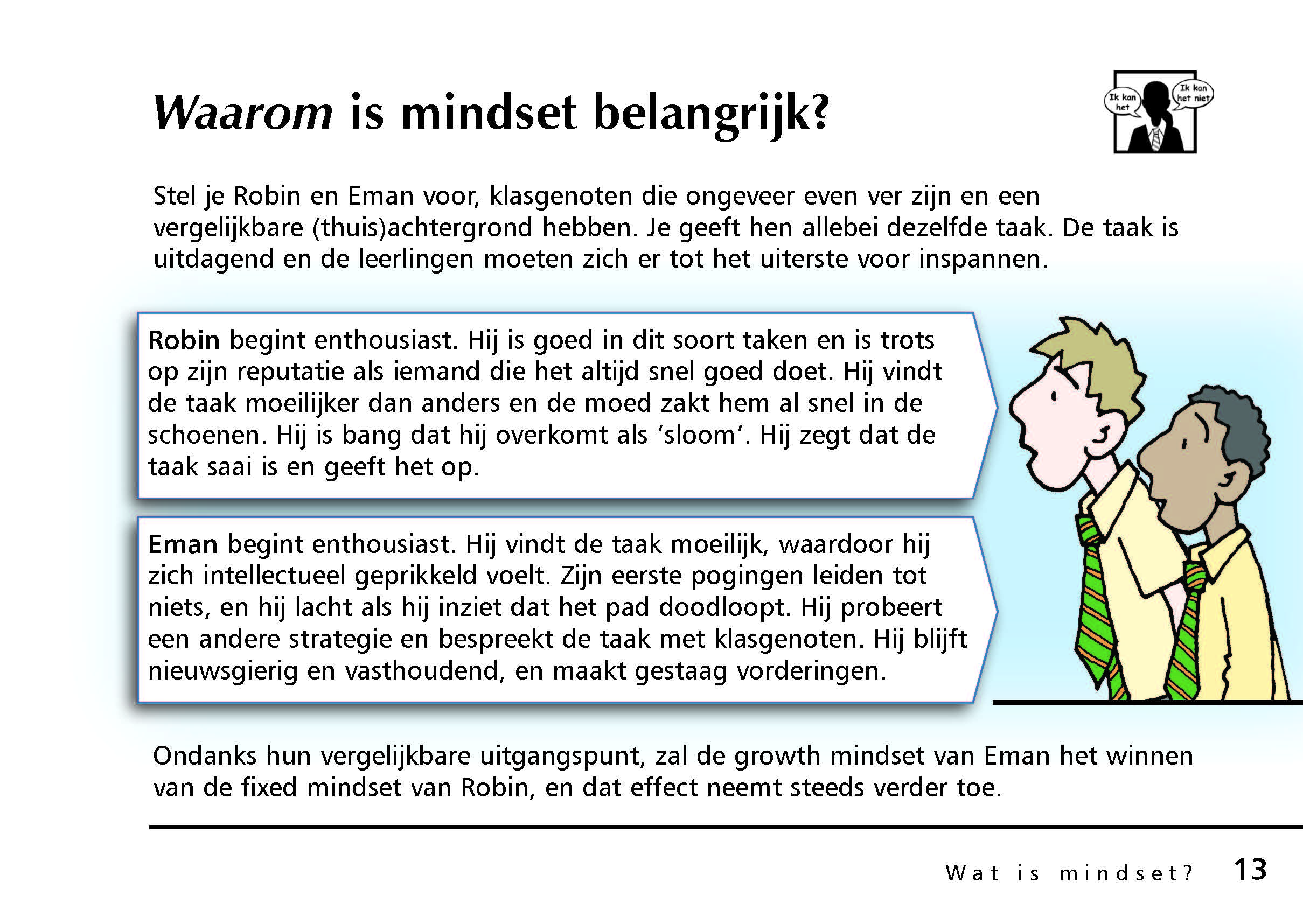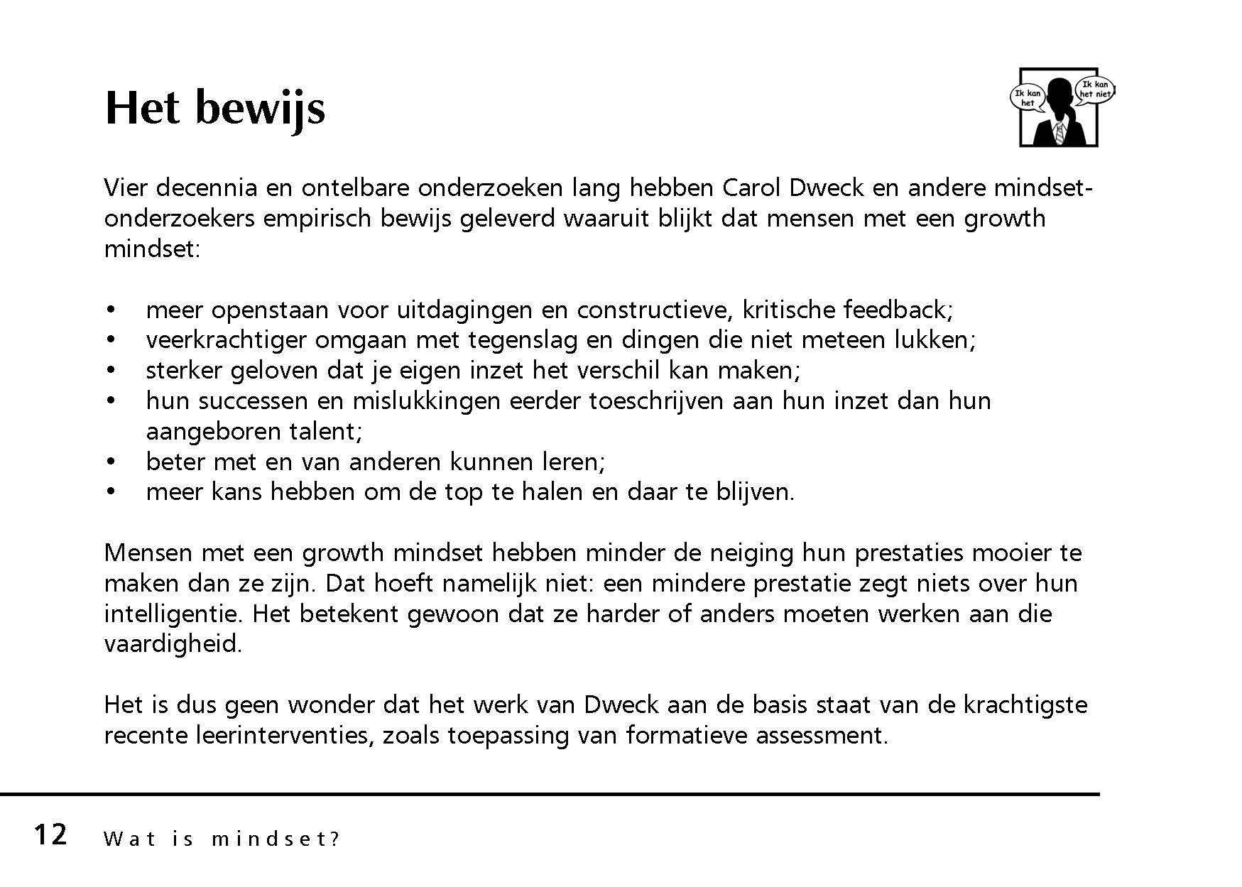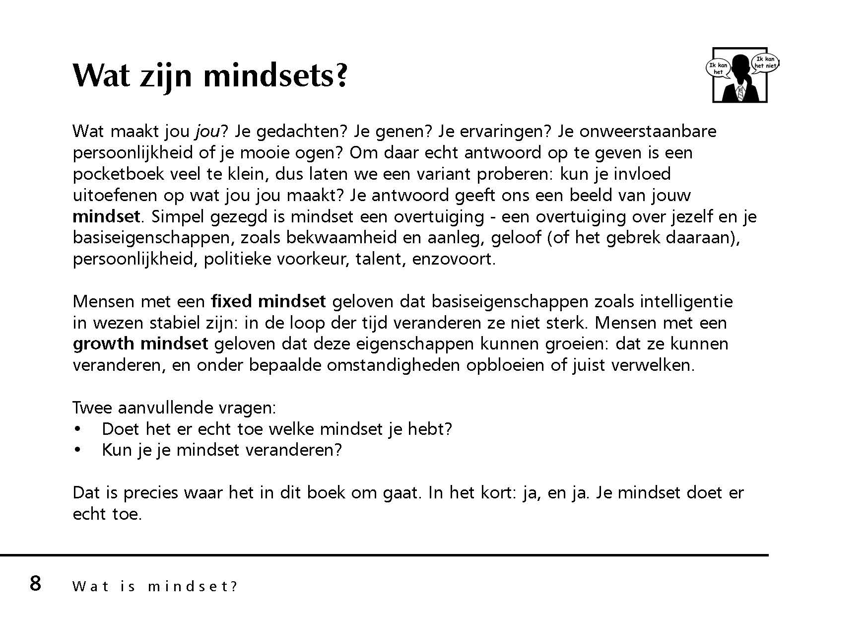 Dit kleine boekje bevat een schat aan informatie over het belang van een growth mindset voor het leerproces. Het laat zien hoe je leerlingen kunt helpen zo’n mindset te ontwikkelen. Met bewijs uit onderzoek en voorbeelden uit de praktijk tonen de auteurs aan welke verandering mogelijk is als leerlingen een growth mindset ontwikkelen.