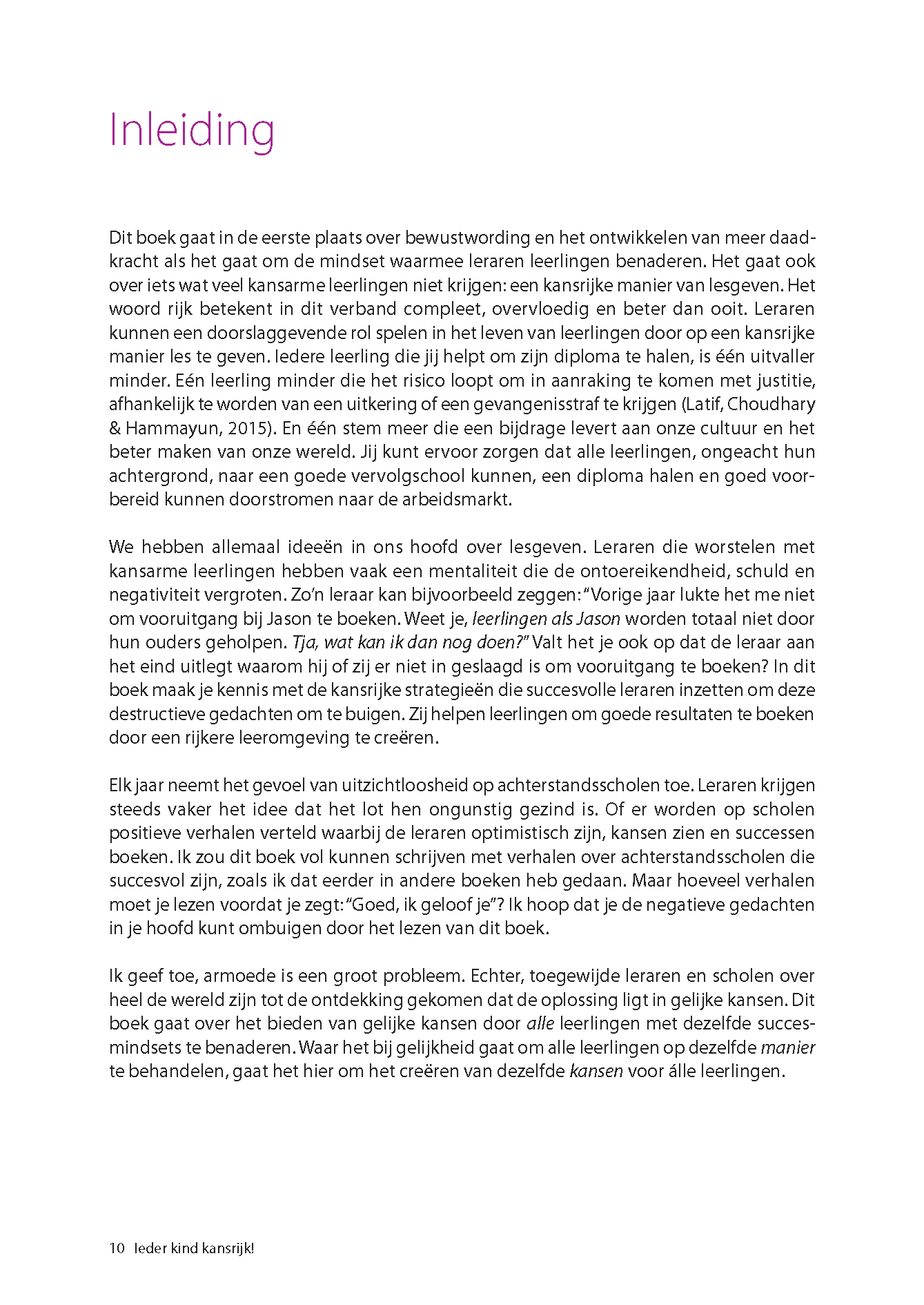 "Wat een prachtig praktisch boek, geschreven door iemand die weet wat armoede met je doet, maar ook heeft ontdekt dat leerlingen uit kansarme gezinnen kunnen groeien wanneer hun leraar om hen geeft en naar hen omziet. Dit is een standaardwerk voor iedere leraar (in opleiding): vol wetenschappelijke feiten, praktische tips en suggesties om kinderen uit te dagen maximaal gebruik te maken van hun talenten. De ideeën zijn niet alleen toepasbaar voor kinderen uit arme gezinnen, maar voor álle kinderen."