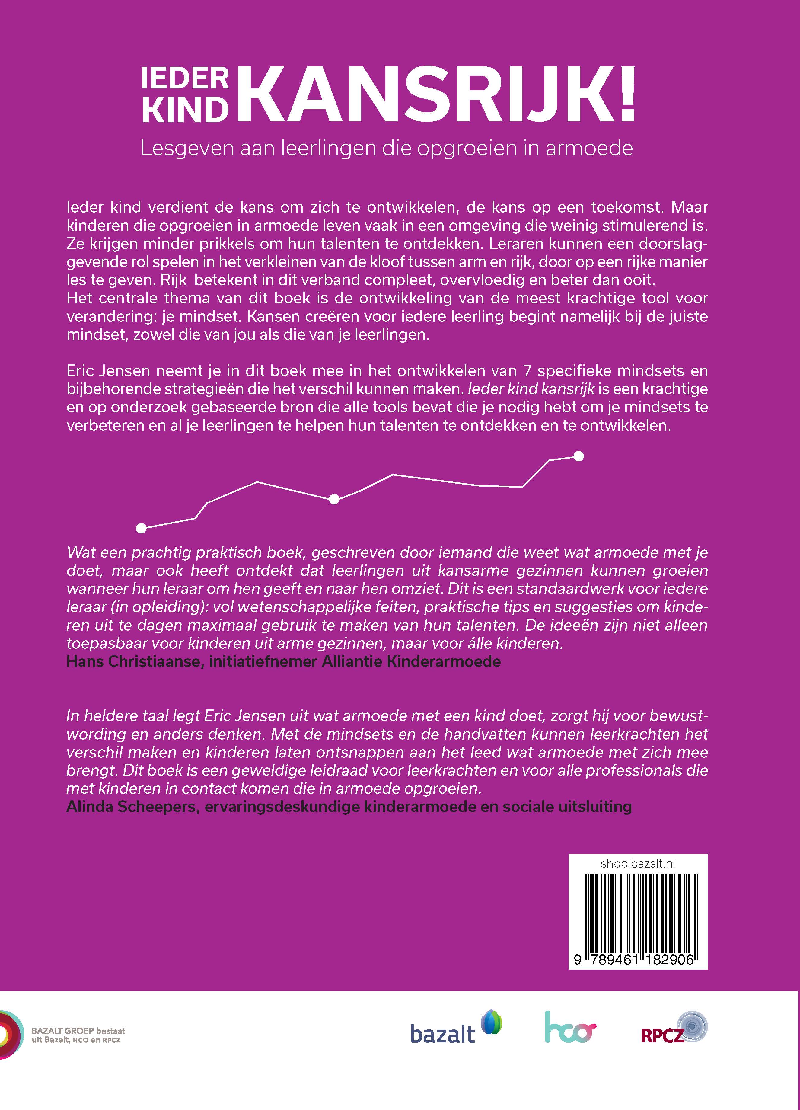 "In heldere taal legt Eric Jensen uit wat armoede met een kind doet, zorgt hij voor bewustwording en anders denken. Met de mindsets en de handvatten kunnen leerkrachten het verschil maken en kinderen laten ontsnappen aan het leed wat armoede met zich mee brengt. Dit boek is een geweldige leidraad voor leerkrachten en voor alle professionals die met kinderen in contact komen die in armoede opgroeien."