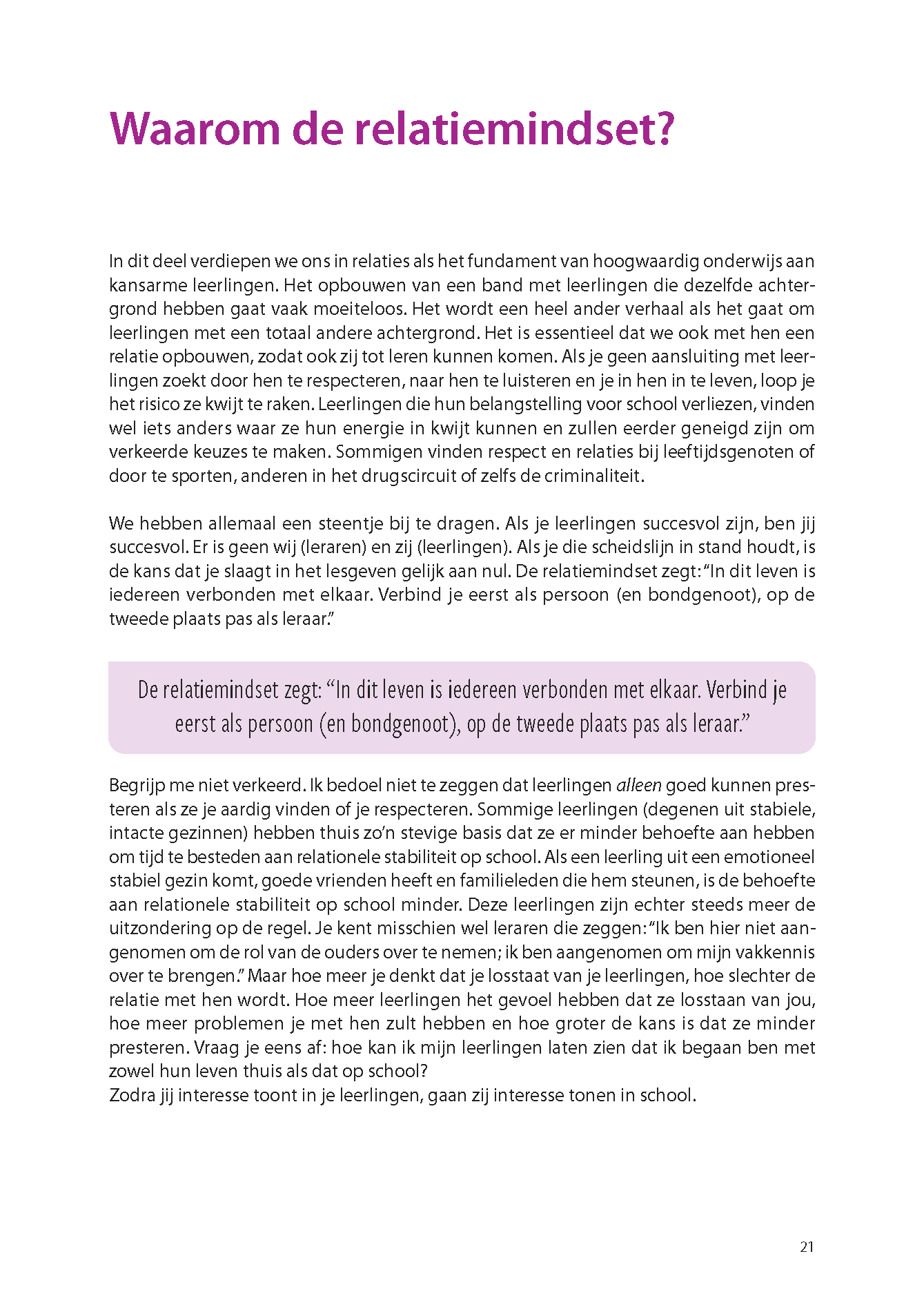 Het centrale thema van dit boek is de ontwikkeling van de meest krachtige tool voor verandering: je mindset. Kansen creëren voor iedere leerling begint namelijk bij de juiste mindset, zowel die van jou als die van je leerlingen.