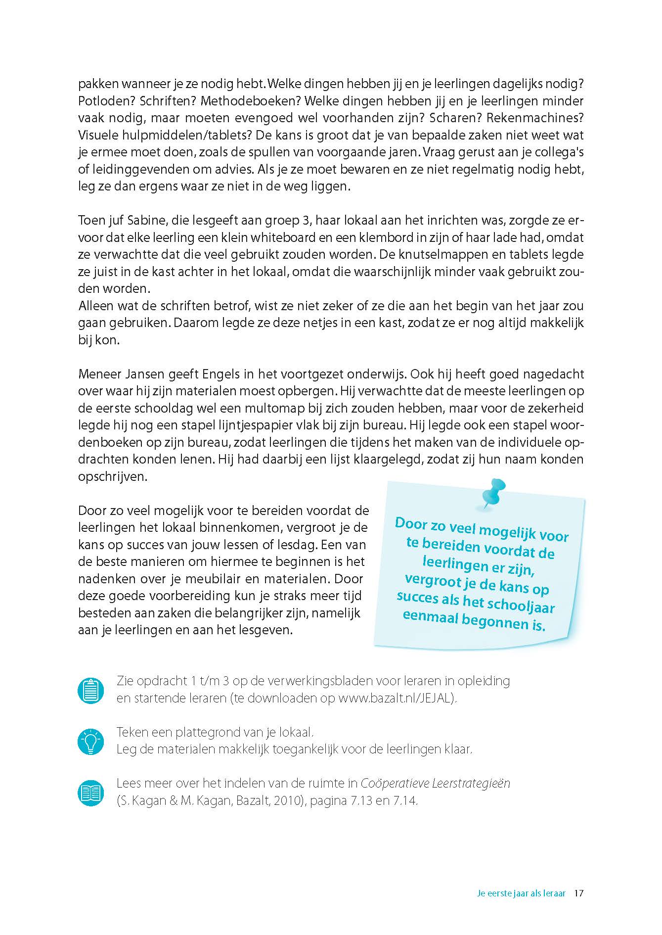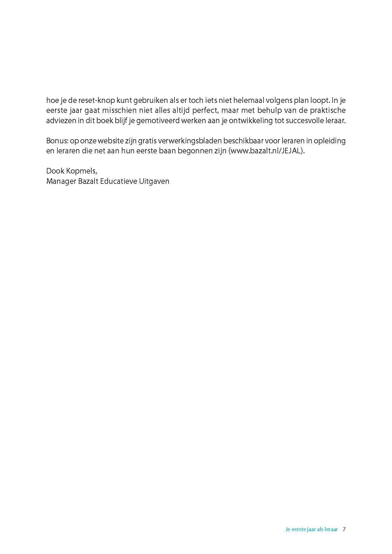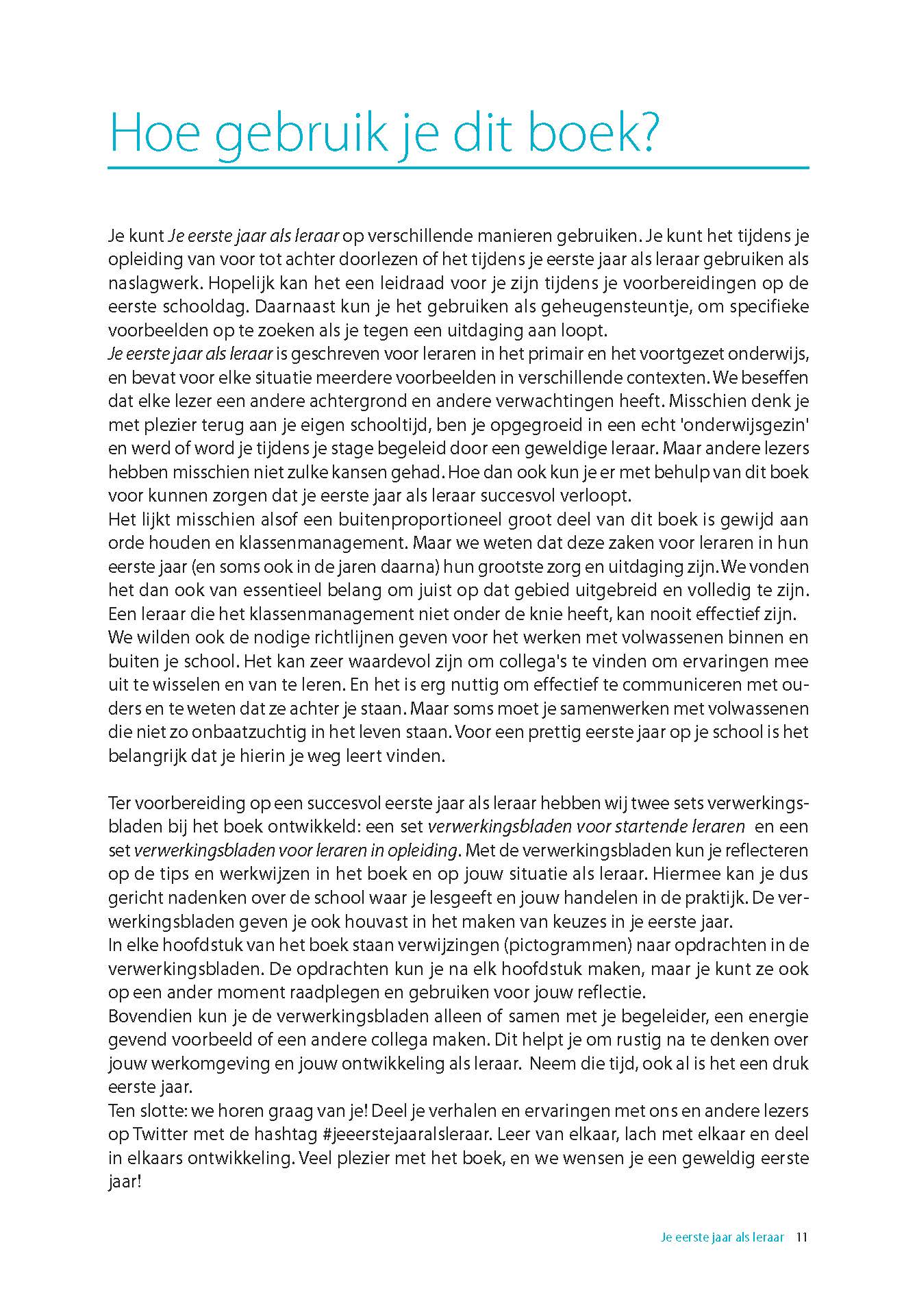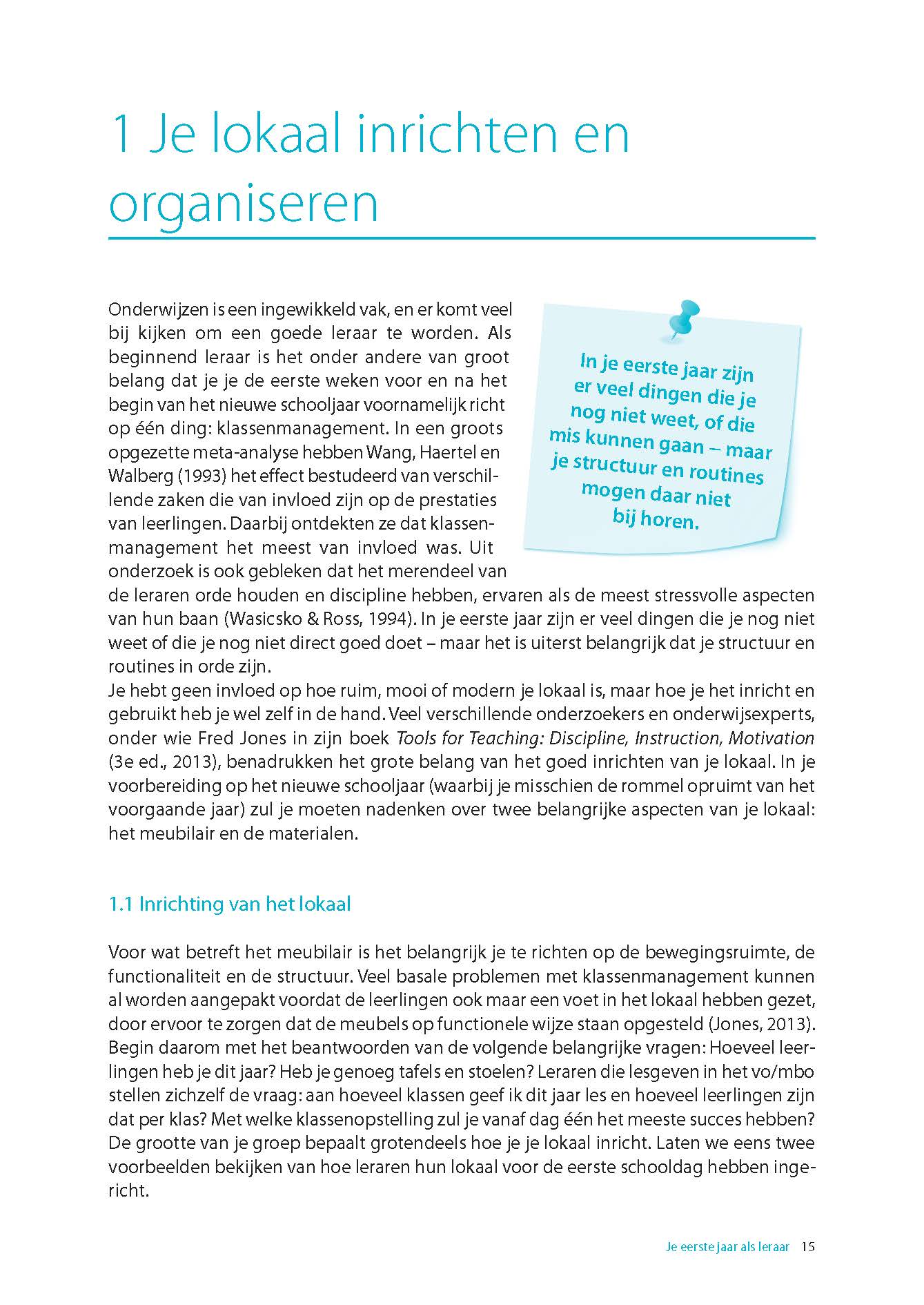 Het boek bevat diverse voorbeelden en anekdotes uit zowel het primair als het voortgezet onderwijs. Op welke school en in welk vak je ook lesgeeft, je zult altijd voor jou bruikbare en nuttige strategieën aantreffen. Je leert ook hoe je aan je strategieën kunt sleutelen en hoe je de reset-knop kunt gebruiken als er toch iets niet helemaal volgens plan loopt. In je eerste jaar gaat misschien niet alles altijd perfect, maar met behulp van de praktische adviezen in dit boek blijf je gemotiveerd werken aan je ontwikkeling tot succesvolle leraar!