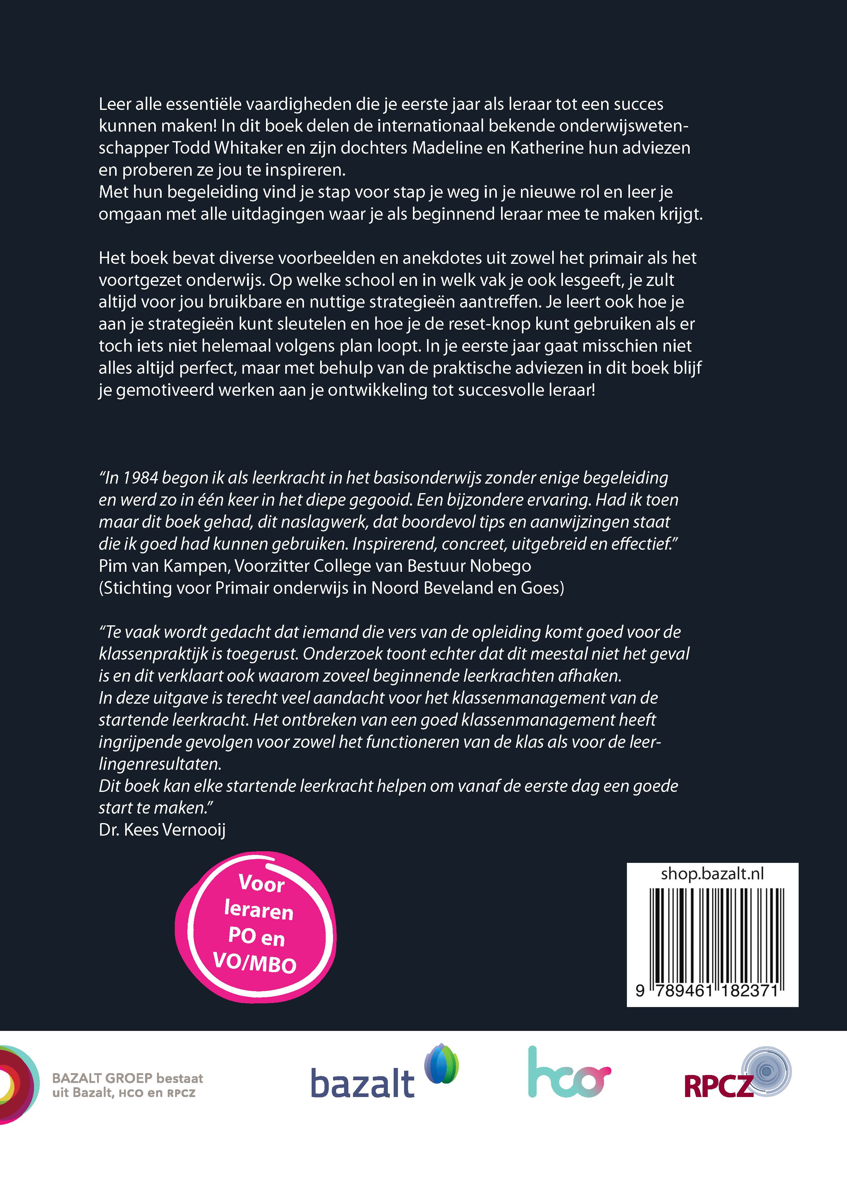 Leer alle essentiële vaardigheden die je eerste jaar als leraar tot een succes kunnen maken! In dit boek delen de internationaal bekende onderwijswetenschapper Todd Whitaker en zijn dochters Madeline en Katherine hun adviezen en inspiratie met je.