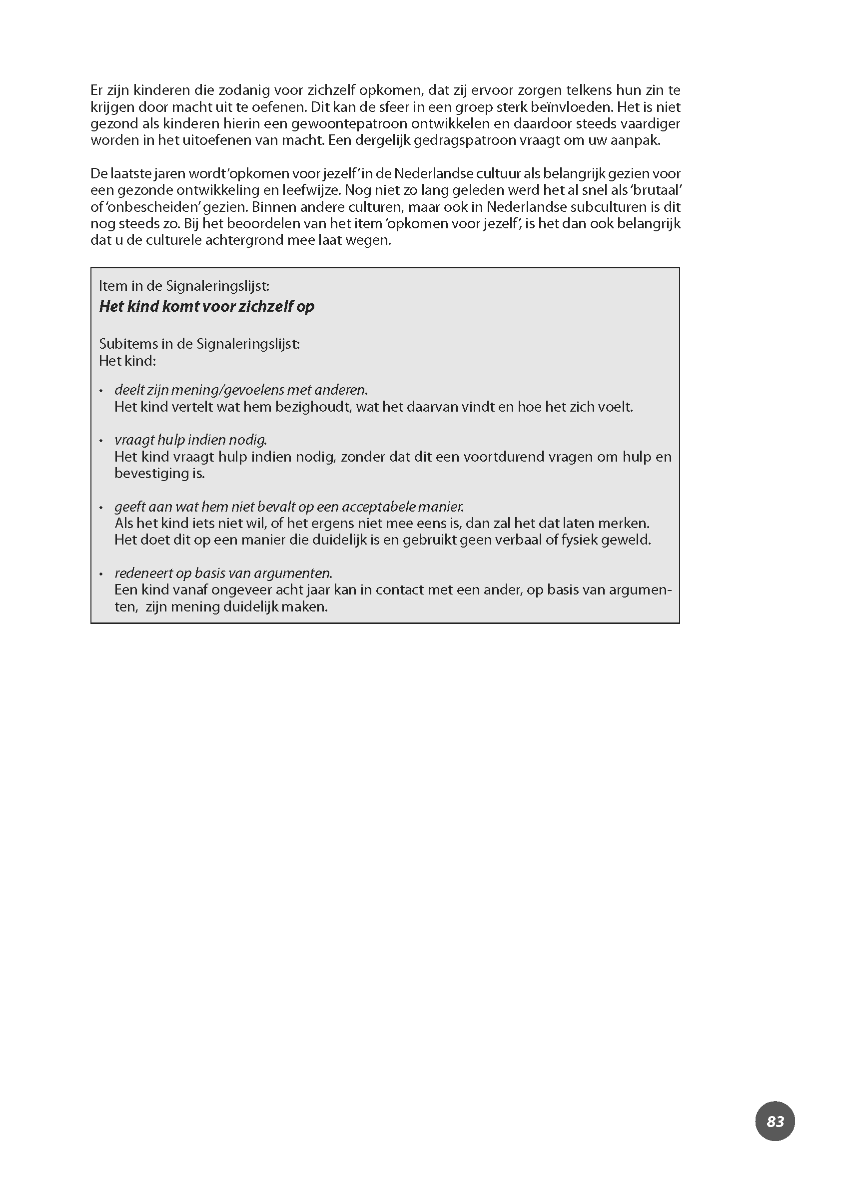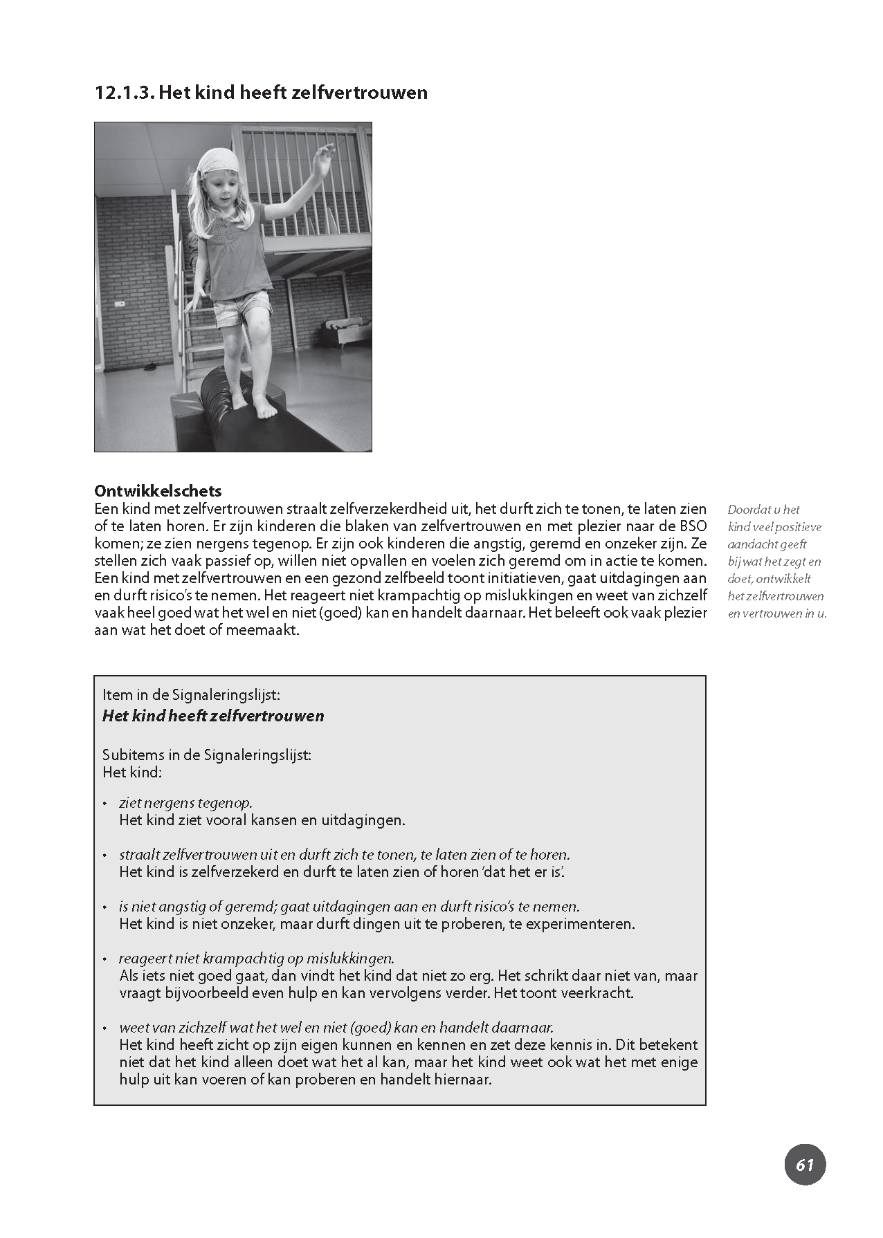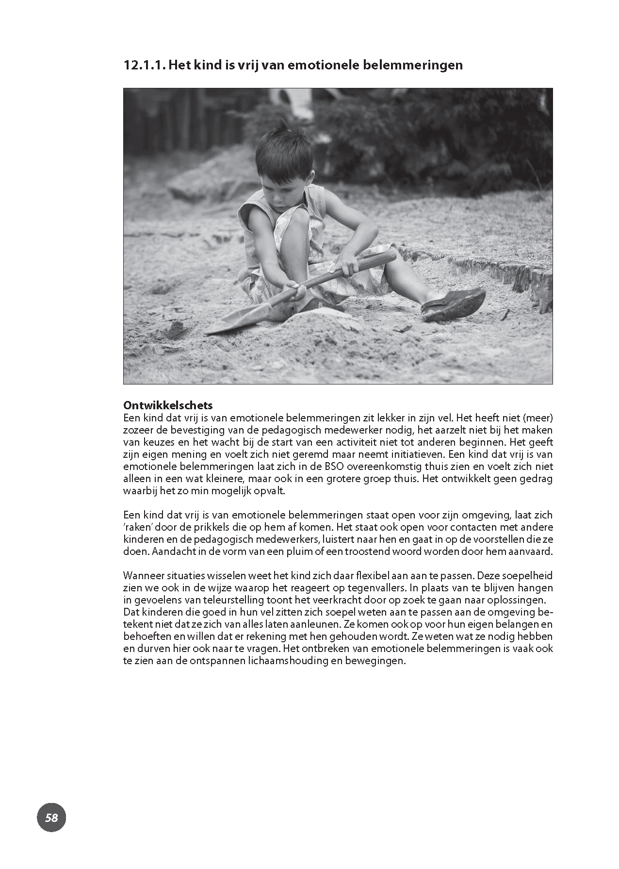 De uitgave KIJK! in de BSO dient als handleiding voor de digitale applicatie. In de uitgave zijn beschrijvingen opgenomen van het ontwikkelingsverloop voor kinderen in groep 1-2 en voor kinderen uit groep 3 t/m 8. Deze beschrijvingen geven je een beeld van hoe de sociaal-emotionele ontwikkeling bij kinderen uit deze leeftijdsgroepen in grote lijnen verloopt. Ze geven aan wat je van de kinderen in deze periode normaal gesproken mag verwachten.