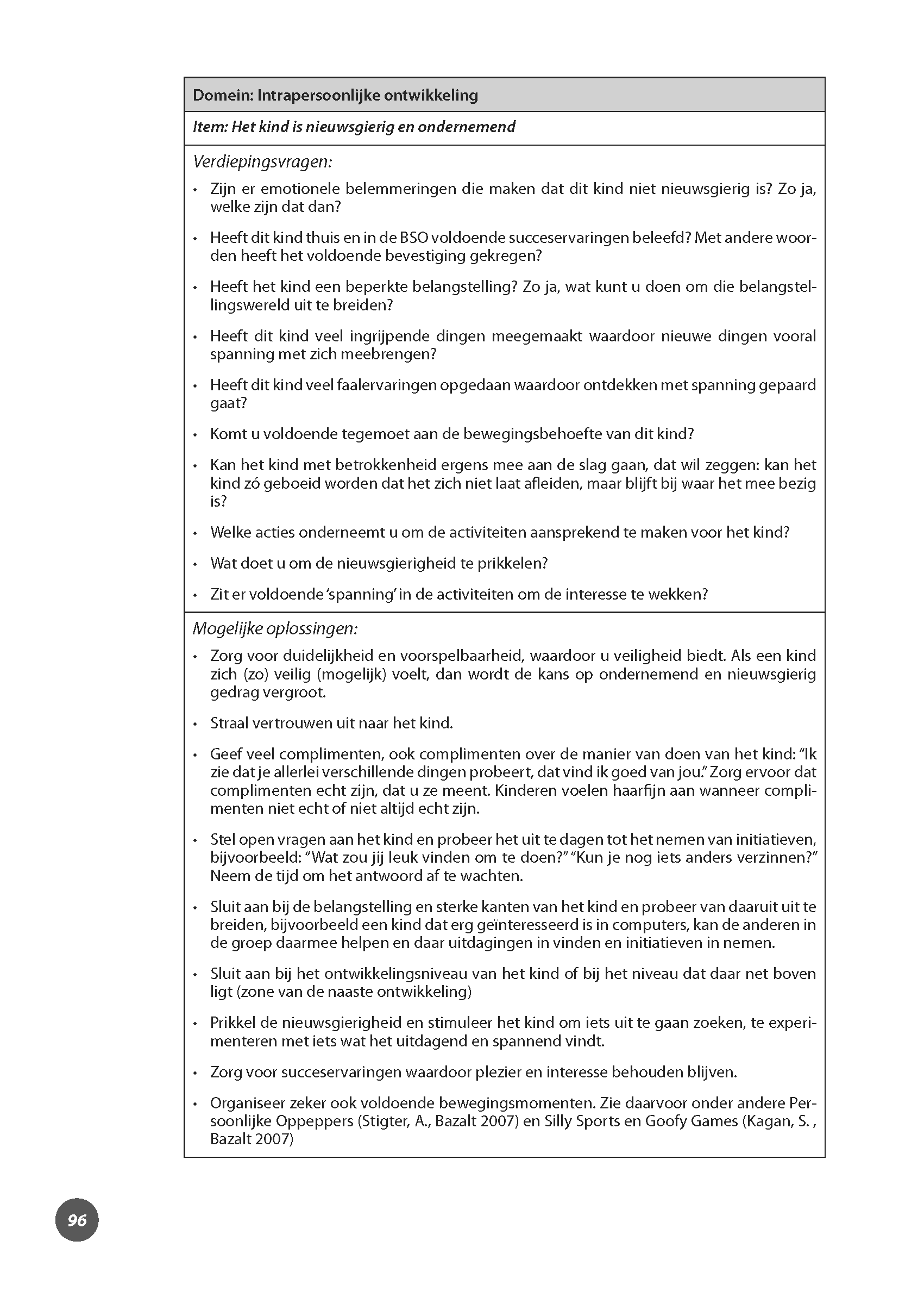 Steeds meer ouders/verzorgers maken gebruik van de opvangmogelijkheden van een BSO. Zij dragen daarmee hun opvoedkundige taak voor een aantal uren per dag over aan de pedagogisch medewerkers van de BSO. De buitenschoolse opvang biedt kinderen de mogelijkheid om andere kinderen te ontmoeten, met hen te spelen. Het is bij uitstek een plaats waar kinderen zich (sociaal-emotioneel) verder kunnen ontwikkelen. Ouders/verzorgers moeten erop kunnen vertrouwen dat hun kind bij de BSO in goede handen is. Dat stelt de nodige eisen aan de deskundigheid van de pedagogisch medewerkers. Zij moeten niet alleen een gedegen kennis van de ontwikkeling hebben, maar vooral ook in staat zijn hetgeen ze bij kinderen observeren om te zetten in de juiste ondersteuning, passend bij de specifieke kenmerken en behoeften van ieder kind.