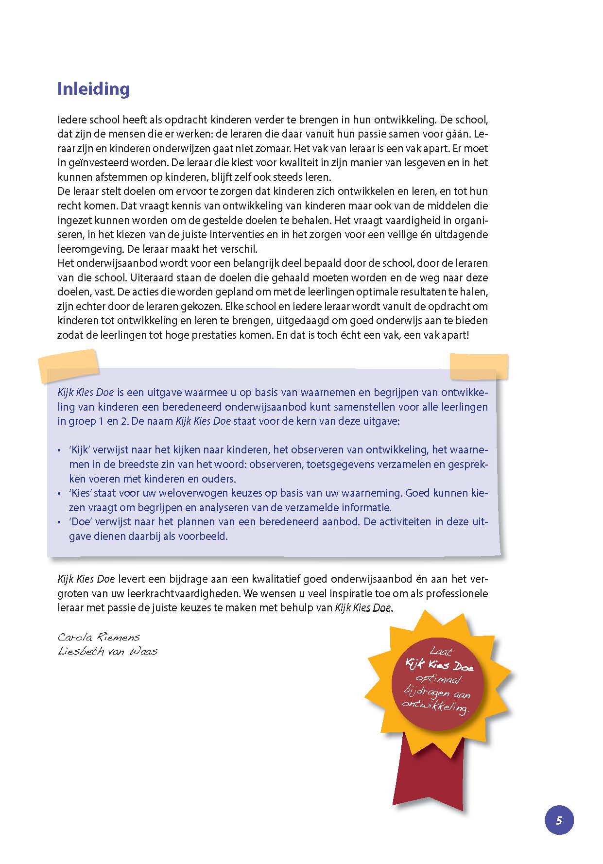 Kijk Kies Doe is een praktisch hulpmiddel bij het samenstellen van een beredeneerd onderwijsaanbod in groep 1-2