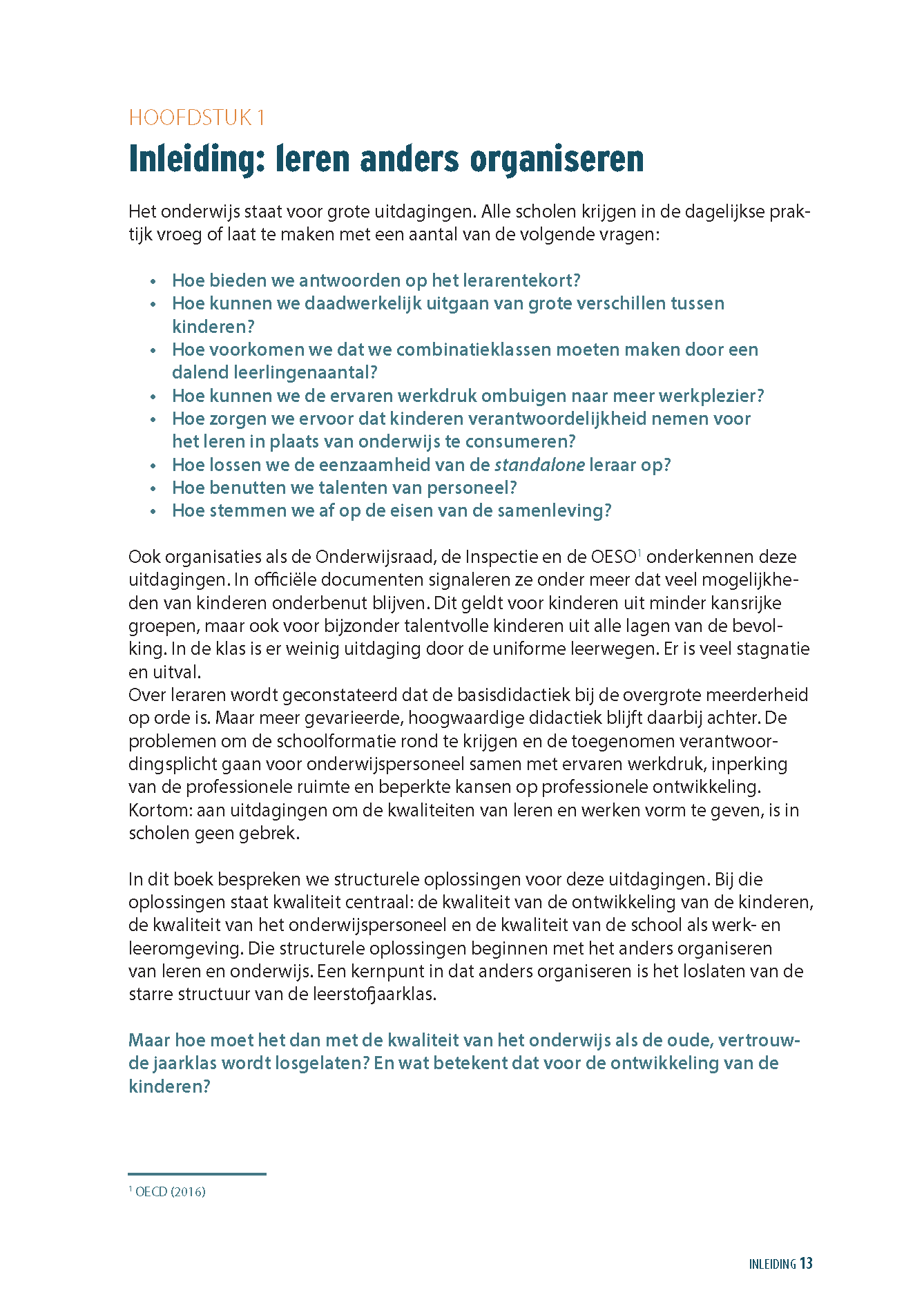 Veel scholen lopen binnen de huidige organisatie van het onderwijs tegen grenzen aan. Hoe kun je passend onderwijs bieden en voldoende differentiëren in een traditionele jaarklas? Hoe ga je om met het lerarentekort? Hoe geef je leraren een minder geïsoleerde positie?