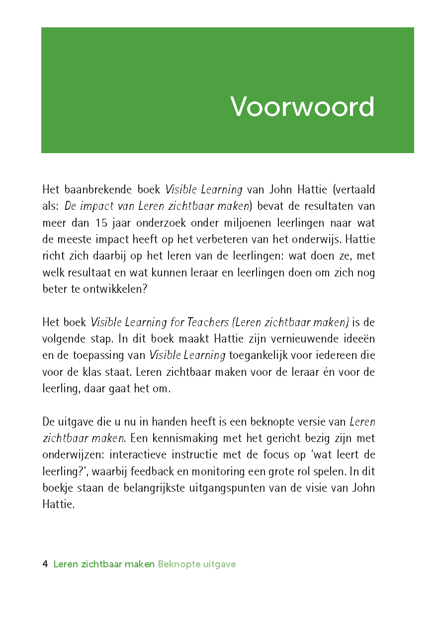 | Expertisegebieden: | Hattie: Leren zichtbaar maken |
