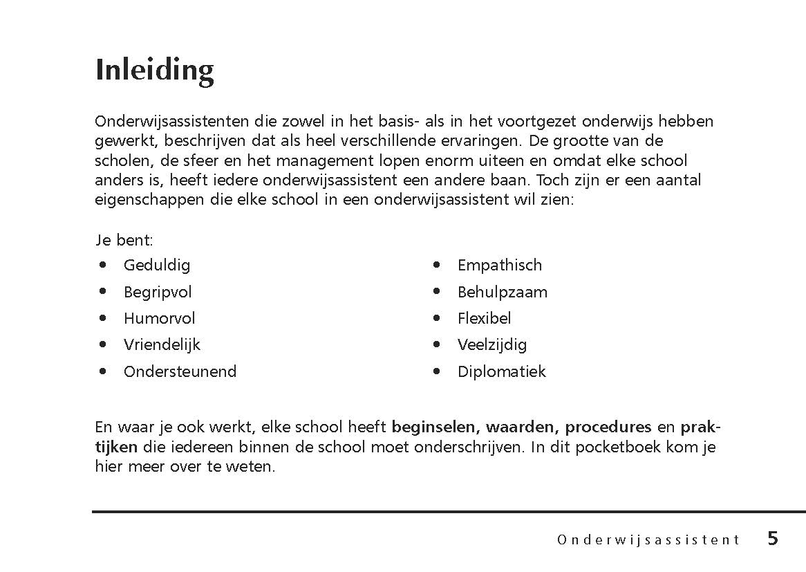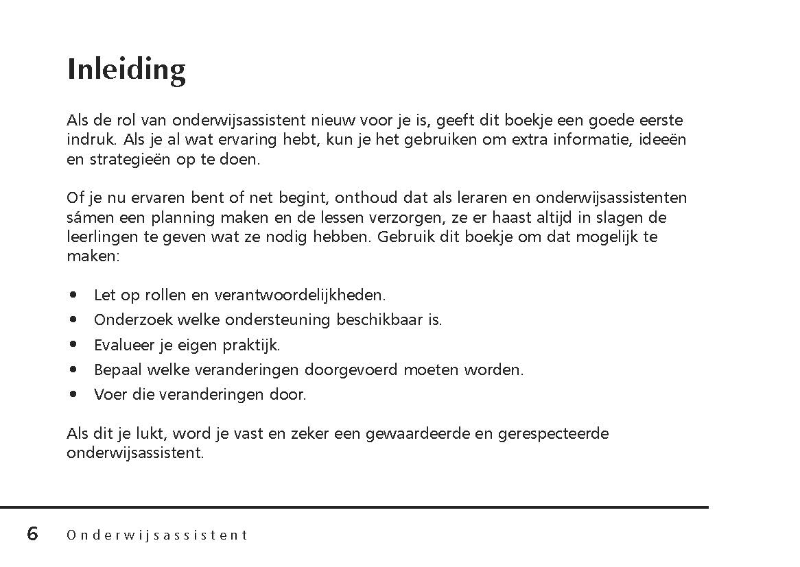 Dit boekje bevat waardevolle adviezen voor de onderwijsassistent. Vandaag aan de dag is de onderwijsassistent een onmisbare schakel binnen het onderwijs en geeft ondersteuning aan zowel leerkrachten als leerlingen, maar ook aan de school in zijn totaliteit.