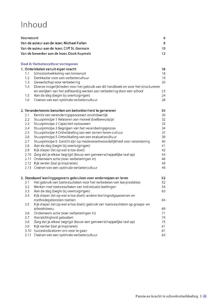 Dit boek geeft een praktische uitwerking aan Fullan`s wereldwijd toegepaste principes voor effectieve onderwijsverbetering. Het is een handboek dat zo in de school gebruikt kan worden. Uitgewerkt tot op het niveau van in besprekingen handige werkpapieren. Die zijn dan ook nog digitaal beschikbaar via de bijbehorende cd-rom.