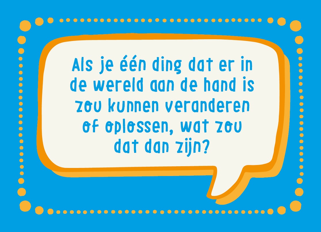 Om sterk in je schoenen te staan, is het belangrijk dat je goed kunt communiceren. Deze gesprekskaarten kunnen je helpen bij het ontwikkelen van deze vaardigheid! Ga aan de hand van verschillende soorten vragen in diverse categorieën met elkaar in gesprek. Als je onder woorden kunt brengen wat je denkt en voelt en je goed naar anderen kunt luisteren, leer je elkaar beter kennen. Je zult merken dat een goede communicatie zorgt dat je een betere band met anderen krijgt en je je zelfverzekerder gaat voelen.