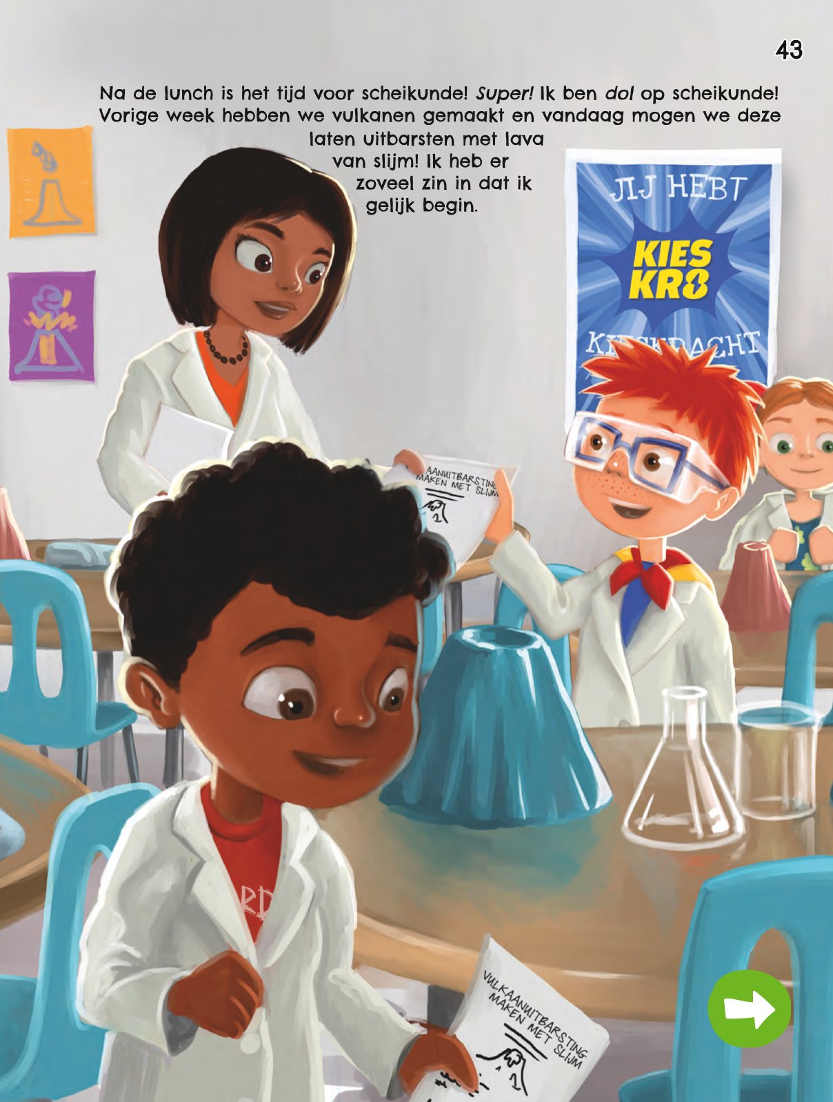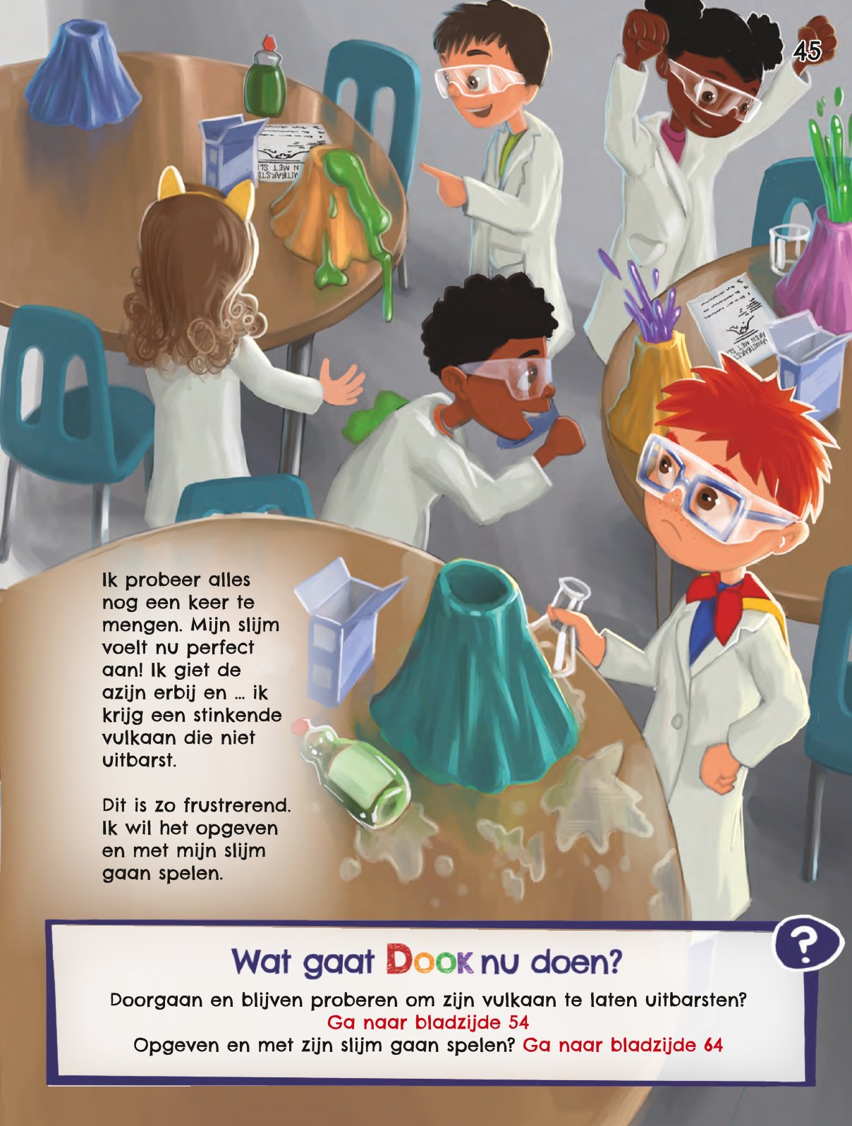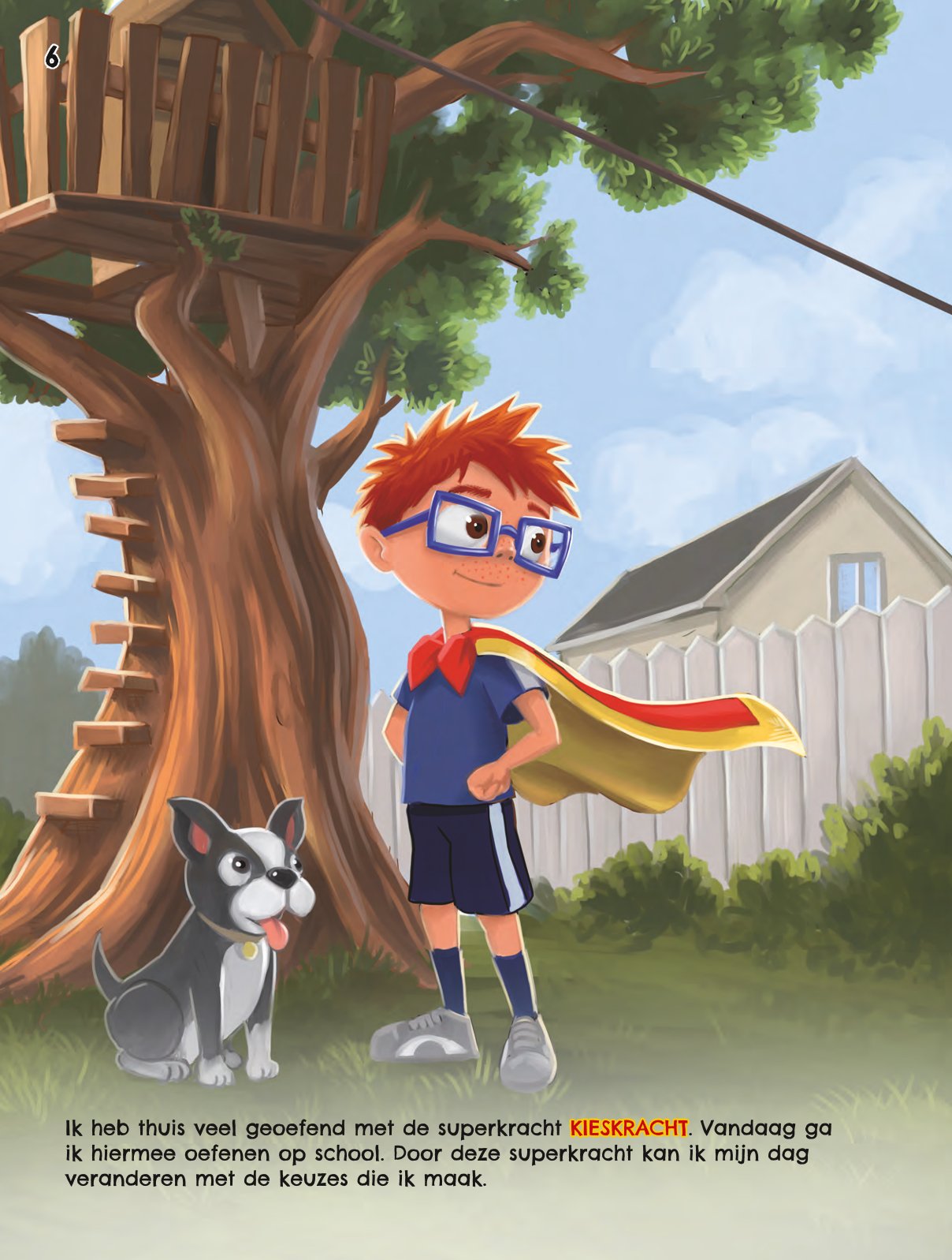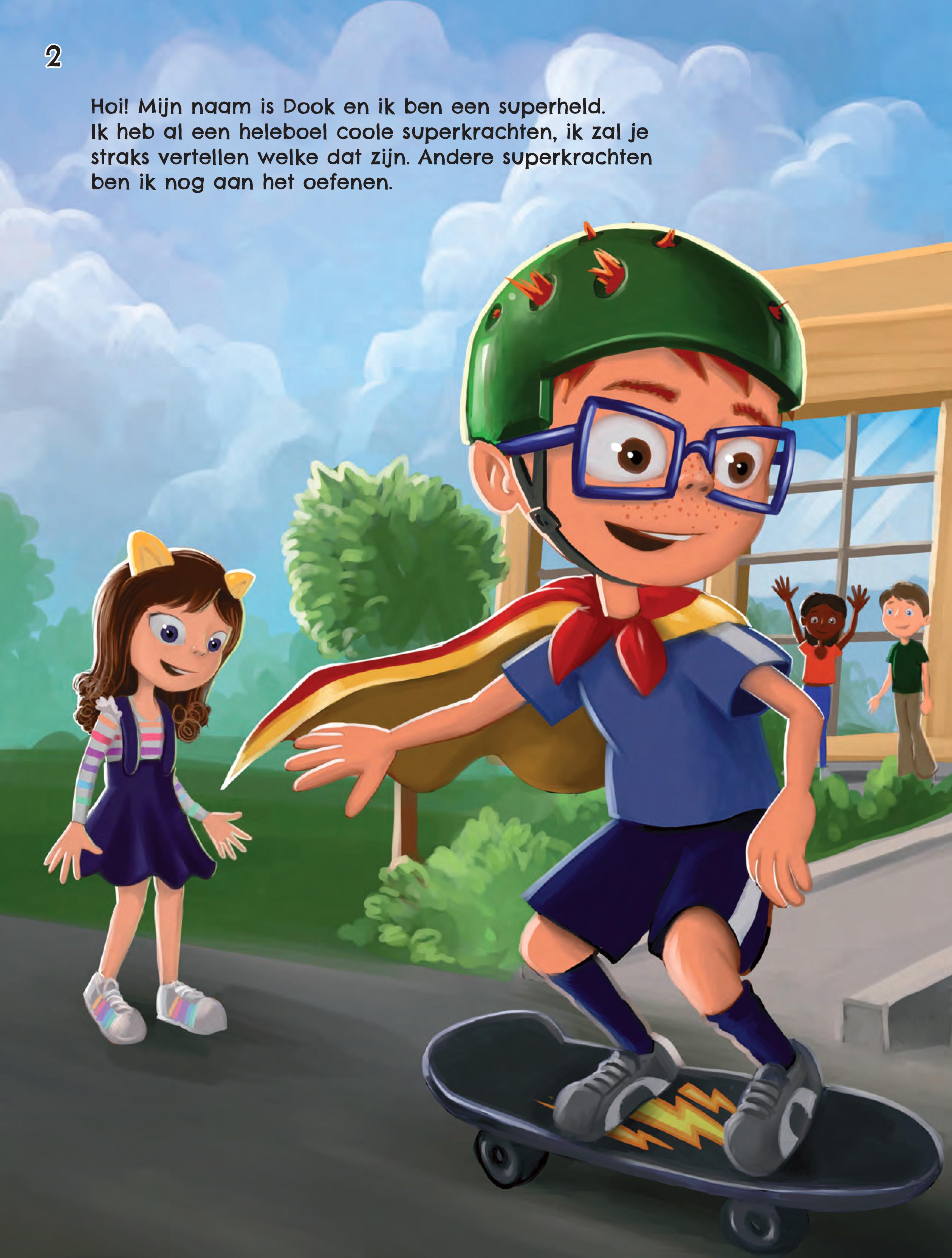 Wat gaat Dook nu doen? Op school is een interactief kinderboek ter ontwikkeling en ondersteuning van de executieve functie ‘emotieregulatie’, de functie in je brein die het mogelijk maakt om je gedrag te sturen. De belevenissen van Dook stimuleren kinderen om te begrijpen hoe het maken van bepaalde keuzes het verloop van zijn dag kunnen beïnvloeden. Als lezer navigeer je door de verhaallijnen door het maken van verschillende keuzes namens Dook. Dit zal ongetwijfeld ook de kieskracht van de lezer stimuleren, want iedereen kan deze superkracht ontwikkelen en versterken!