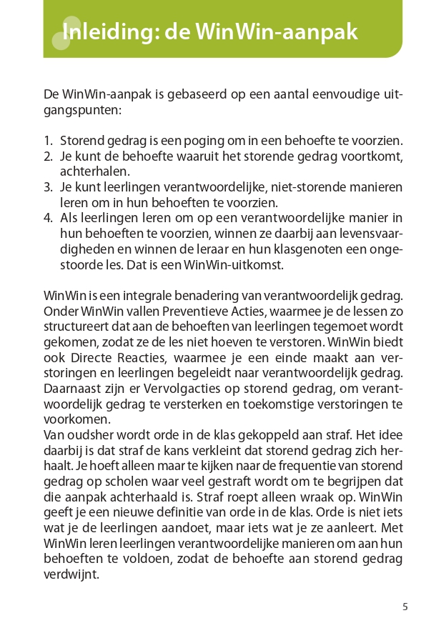 Dit is de beknopte uitgave van de tweedelige boekenset Werken aan verantwoordelijk gedrag, waarin de WinWin-aanpak praktisch uitgewerkt wordt met veel strategieën en voorbeelden.