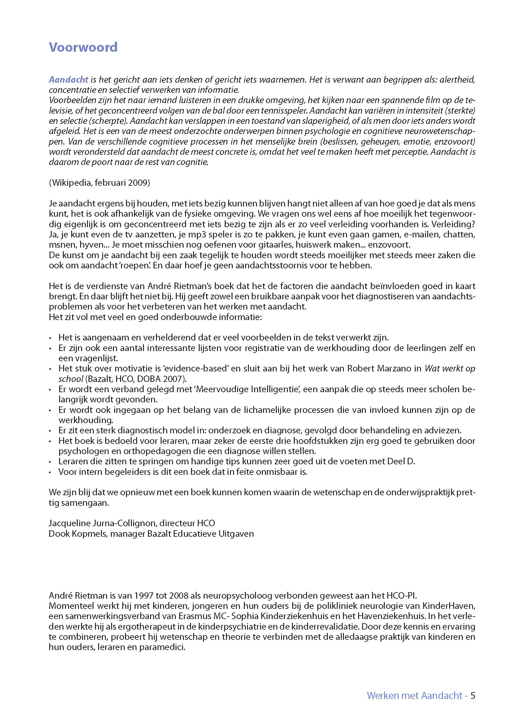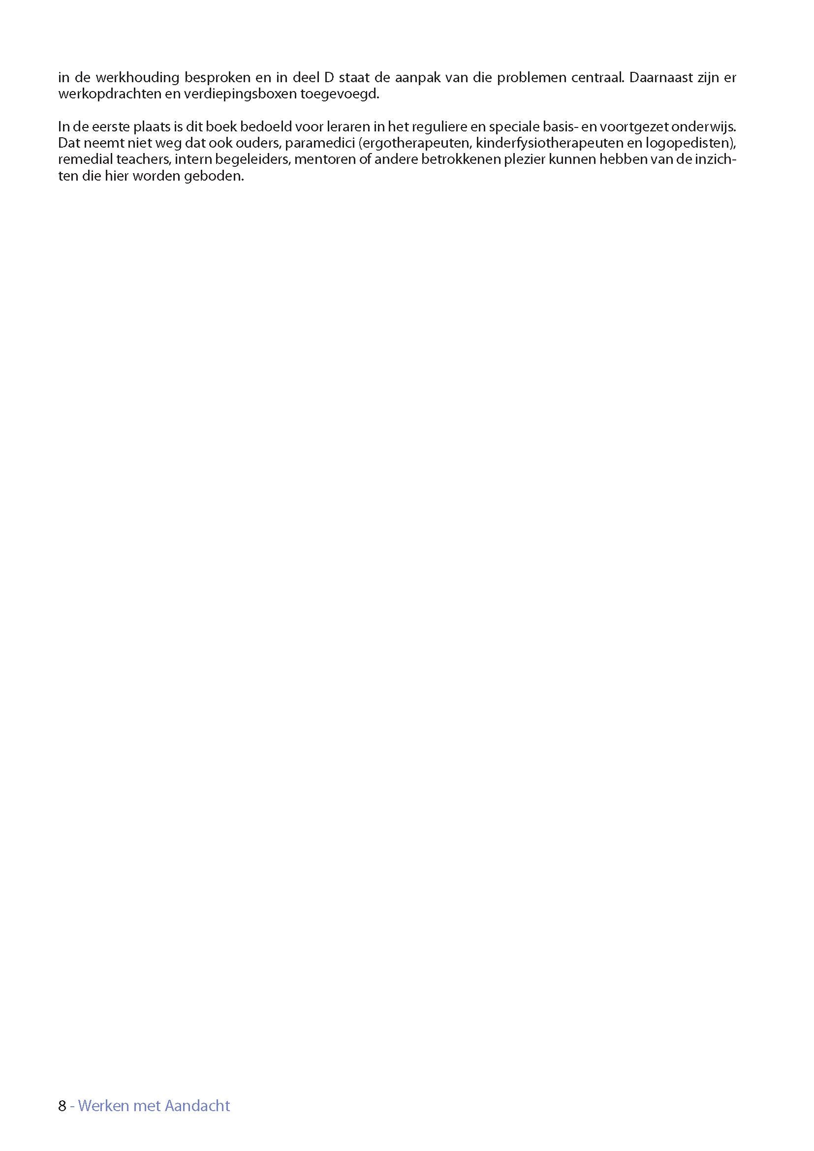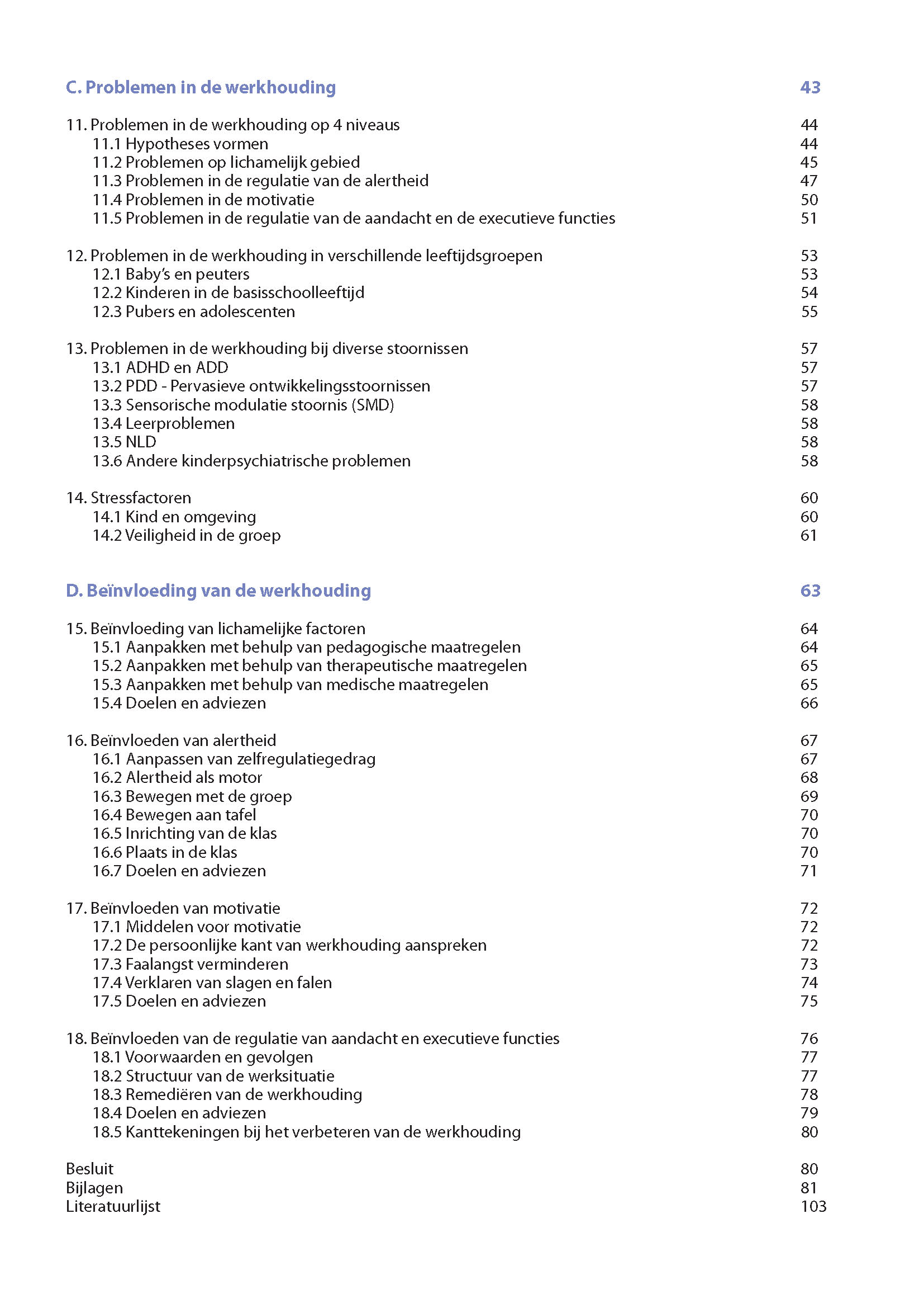Het boek is voorzien van voorbeelden uit de praktijk, werkopdrachten en verdiepingsboxen. Kortom een praktisch handboek voor iedereen - leraren, docenten, paramedici, orthopedagogen en psychologen - die werkt met kinderen met werkhoudingsproblemen!