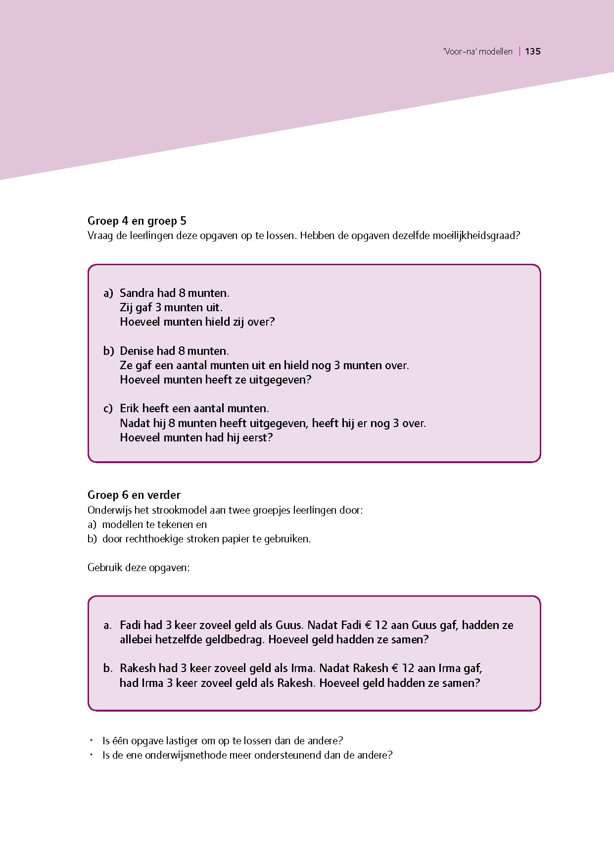 Werken met het strookmodel is gebaseerd op resultaten uit wetenschappelijk onderzoek. Het laat zien hoe je verschillende soorten strookmodellen kunt inzetten om rekenwiskundige verhaalopgaven op te lossen en om verschillende technieken zoals het afleiden, tekenen en manipuleren van strookmodellen, aan te leren aan je leerlingen. Het boek bevat uitgebreide voorbeelden, begeleide vragen en oefenmodellen zodat je concreet en met inzicht het strookmodel kunt gaan gebruiken in de praktijk.