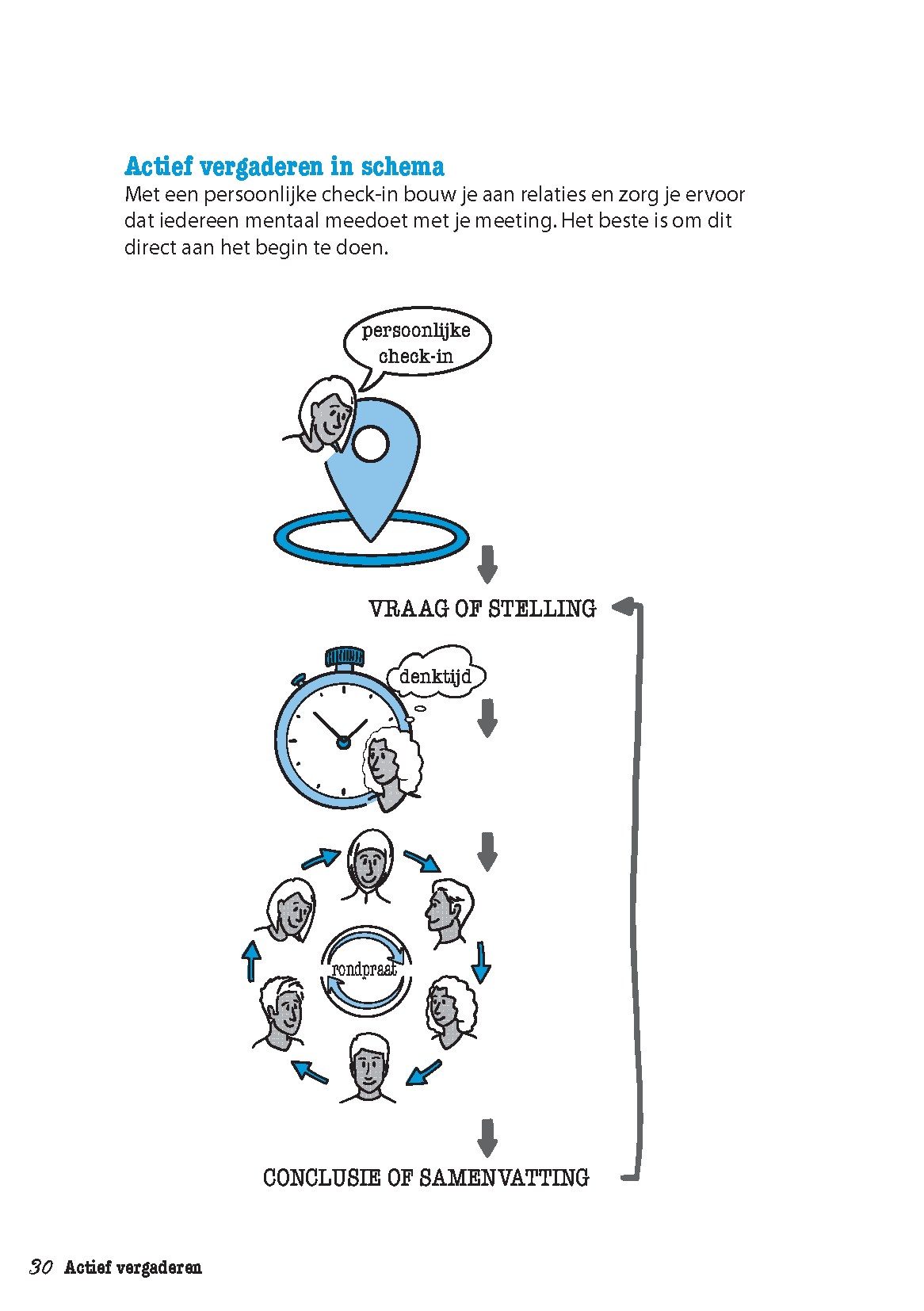- meer resultaat krijgt door stapsgewijs te vergaderen.